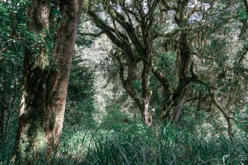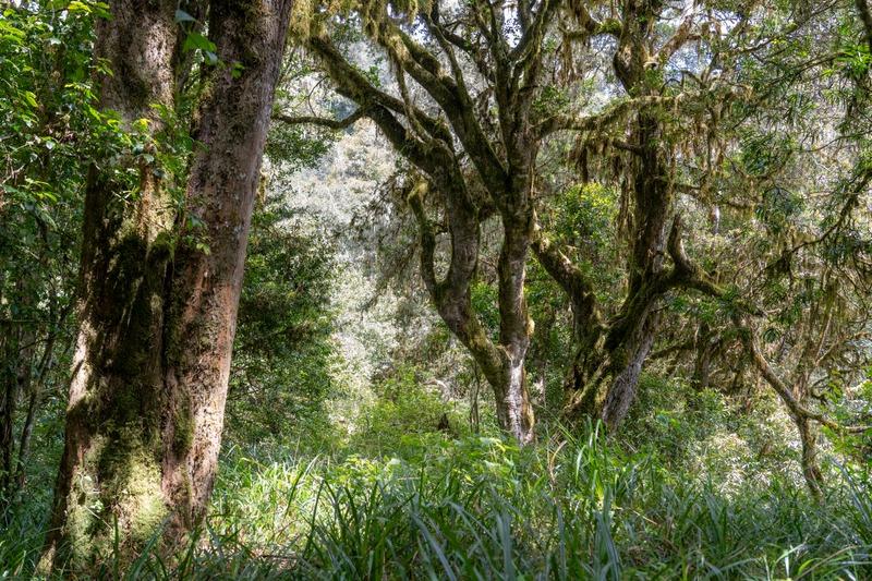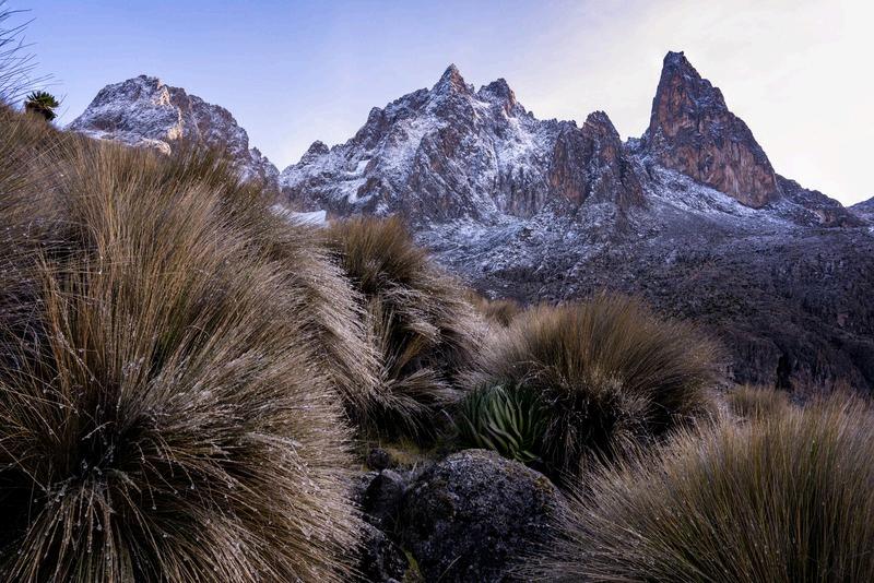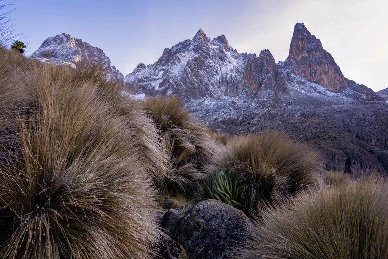 Mount Kenya’s Afromontane forests, extensive bamboo stands, and moorlands host significant biodiversity, including 81 endemic plant species and critically endangered species such as the Mountain Bongo.