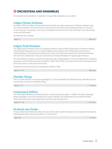 ORCHESTRAS AND ENSEMBLES All orchestras and ensembles run September through May. Acceptance is by audition.