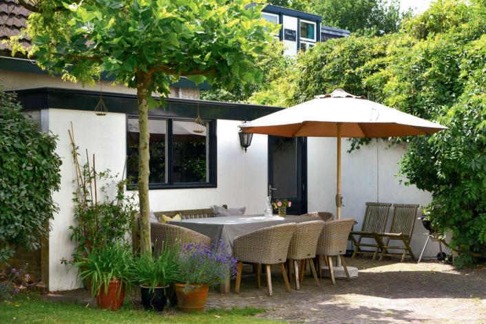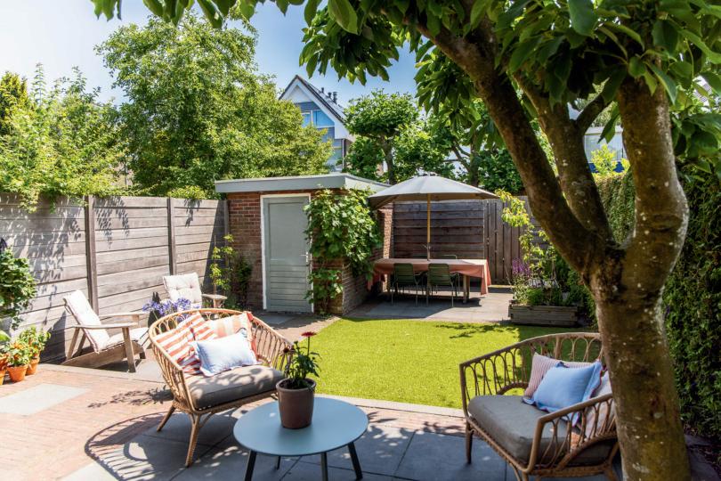Een verzorgde tuin geeft de indruk dat je huis ook goed onderhouden is. Snoei struiken, maai het gras en zorg voor bloeiende planten. Haal dode bladeren, onkruid en groene aanslag zo veel mogelijk weg en berg rondslingerend kinderspeelgoed op. Een tuinset met een bloeiende plant geeft je tuin in de wintermaanden direct meer kleur. Een parasol in de zomer laat zien dat de zon hier regelmatig schijnt.