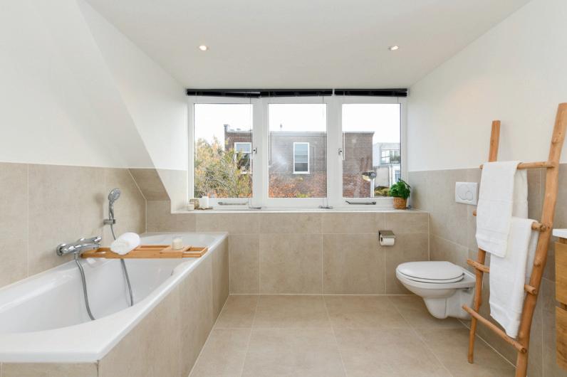 Leg in je badkamer opgerolde handdoeken in een neutrale kleur, plaats kaarsen op de rand van het bad of in het raamkozijn en voeg wat luxe toiletartikelen toe. Hierdoor creëer je een ontspannen spaachtige sfeer in de badkamer. Een groene plant versterkt deze beleving. Dit alles kan potentiële kopers aantrekken die op zoek zijn naar een rustgevende leefruimte.