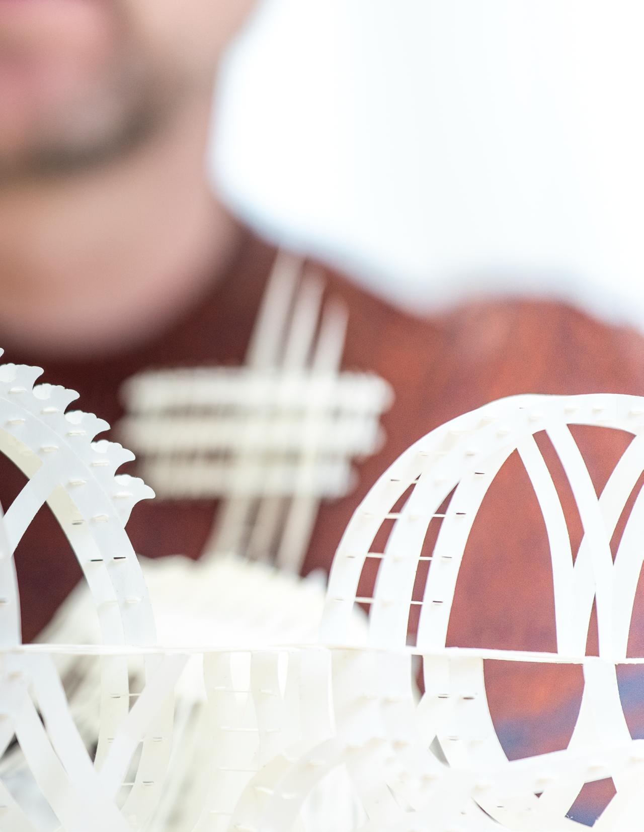 Peter Dahmen, born in 1967, studied Communication Design at the University of Applied Sciences and Arts in Dortmund, Germany. He graduated in 1994 and since then has worked as a professional designer. Since his student time, he passionately creates three-dimensional folding objects out of paper and cardboard. For a long time, only a few people had seen his work. That changed when he published a short film of his paper sculptures in the year 2010 on YouTube. The response was overwhelming. Peter became a social media celebrity with millions of viewers of his YouTube, Facebook, and Pinterest pages. Since then, he has received commissions from companies worldwide.
