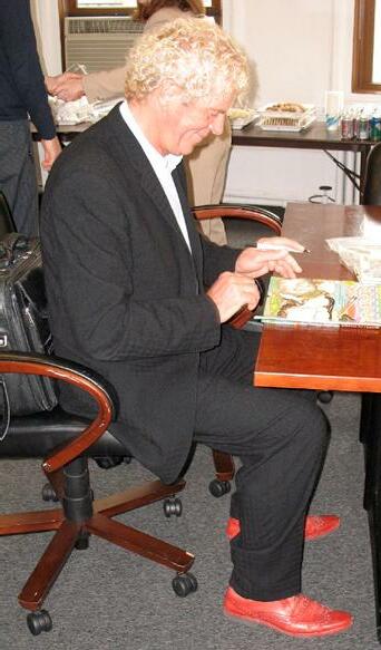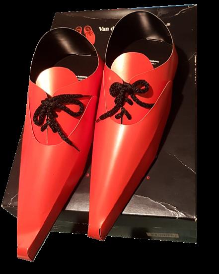 Life-size paper facsimilies of his red shoes, a Ron van der Meer in New York City to award Marian Bataille the Meggendorfer Prize. Photo © 2010 Ellen G. K. Rubin