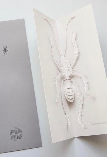 Another example is Entomologie Origamique by Damien Prud'homme, entirely white and cut out by hand, which required between thirty and forty hours of work for each