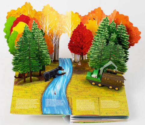 Sappi Paper created From Forest to Forest, an astonishingly ambitious pop-up book that’s equal parts beautiful and educational. Designed by Minneapolis based studio 10 Thousand Design, constructed by Structural Graphics, and engineered by Simon Arizpe. Simon recently delivered a fabulous hour-long webinar for PaperSpecs.com where he discussed this and some of his other works with host, Sabine Lenz. We see here Sabine's original unveiling of the book itself.