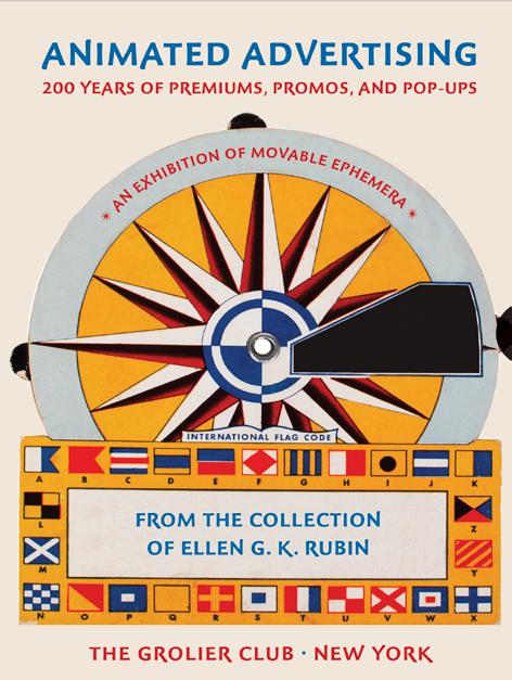 Now’s the time to plan a visit to The Popuplady’s next exhibit at the Grolier Club in New York City. From December 1, 2022 to February 11, 2023, come see Animated Advertising: 200 Years of Premiums, Promos, and Pop-ups in the Second Floor Gallery. Almost 200 movable advertisements starting in 1824 will be presented. The color catalog will also have movables and your MBS is a proud sponsor. Discussion panels and Curator Chats are being planned and will be announced at www. Grolierclub.org The exhibit goes over Christmas and Bibliography Week, January 23-28, 2023, reasons enough to visit New York. Contact The Popuplady and maybe she’ll meet you there for a curator’s tour. popups@popuplady.com