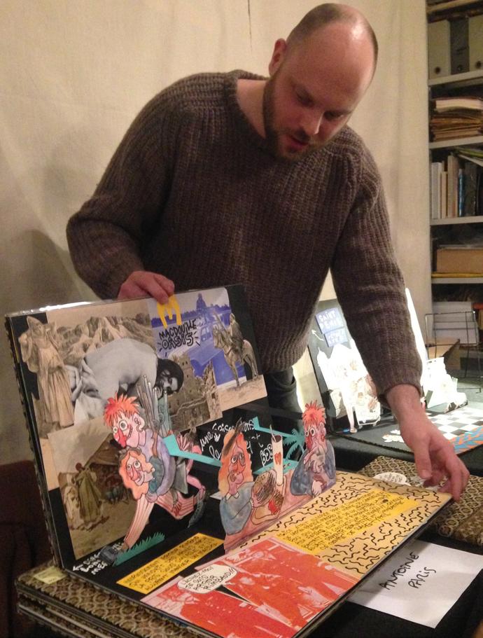 Antoine Paris at the Salon in 2017 with one of his artist books.