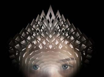 An image projected on stage that is a transition between Peter's work and a young actress.
