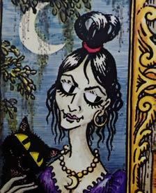 used a cheap, inadequate blueish cardboard that I painted with inexpensive gouache paint. The same stuff that preschoolers use when they make their first drawings for dad and mum. " "