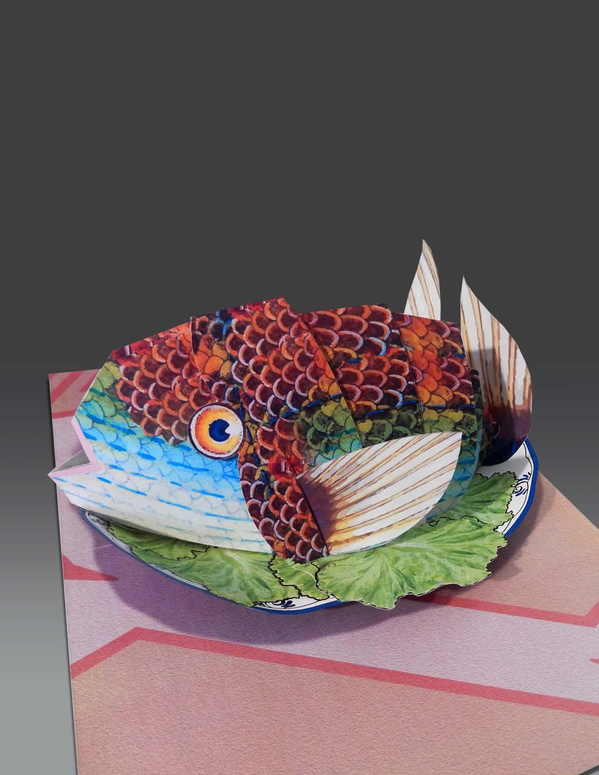 I didn’t use any cello tape this time, but I did keep the can of crab and the big red fish. And of course, I used the correct paper and added adequate gluepoints. Good quality paper is the basis of a good pop-up. That’s one of the many lessons I learned during my 45-year career as a paper engineer.