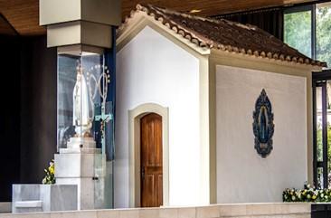 É no recinto desta capelinha que os feirantes se concentram anualmente, frente a N. Sª de Fátima e assistem há 18 anos às cerimónias religiosas.