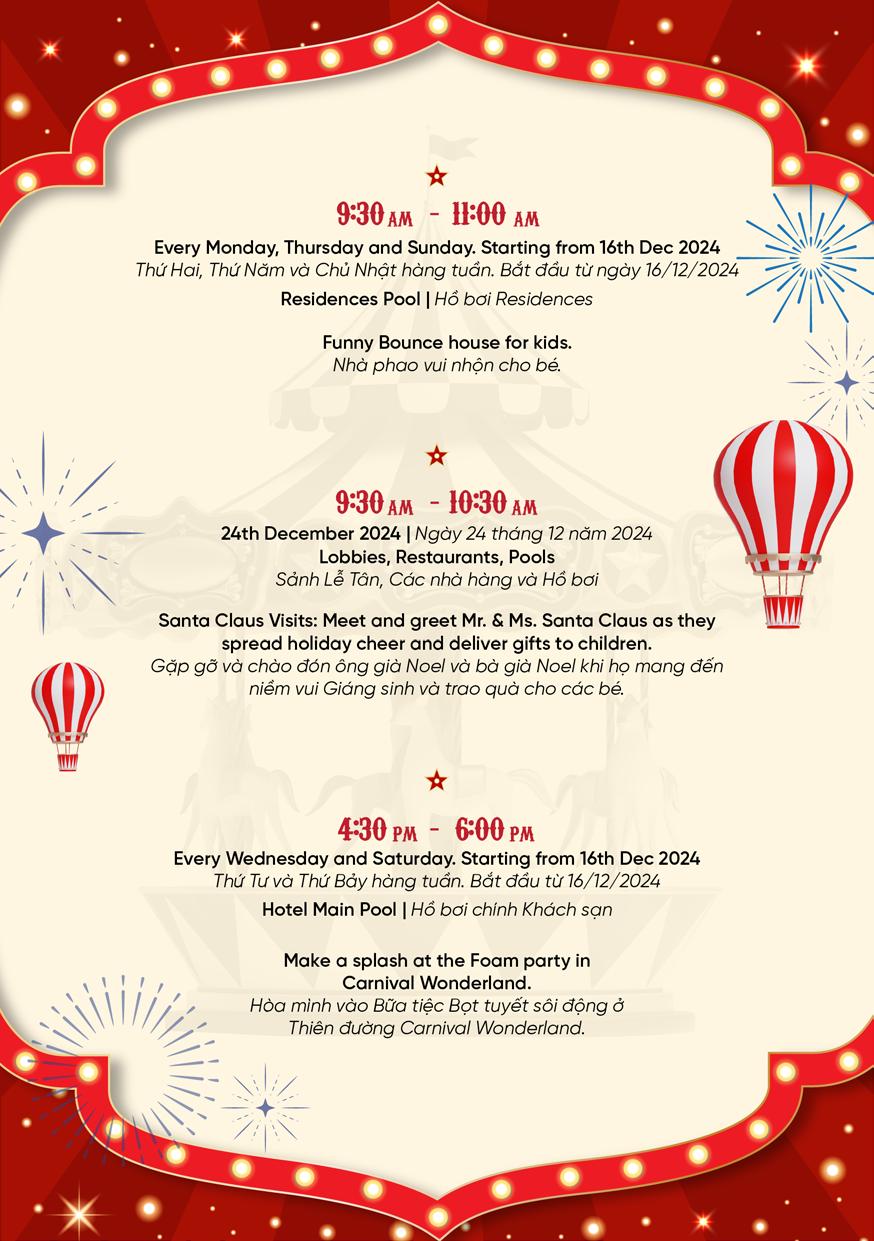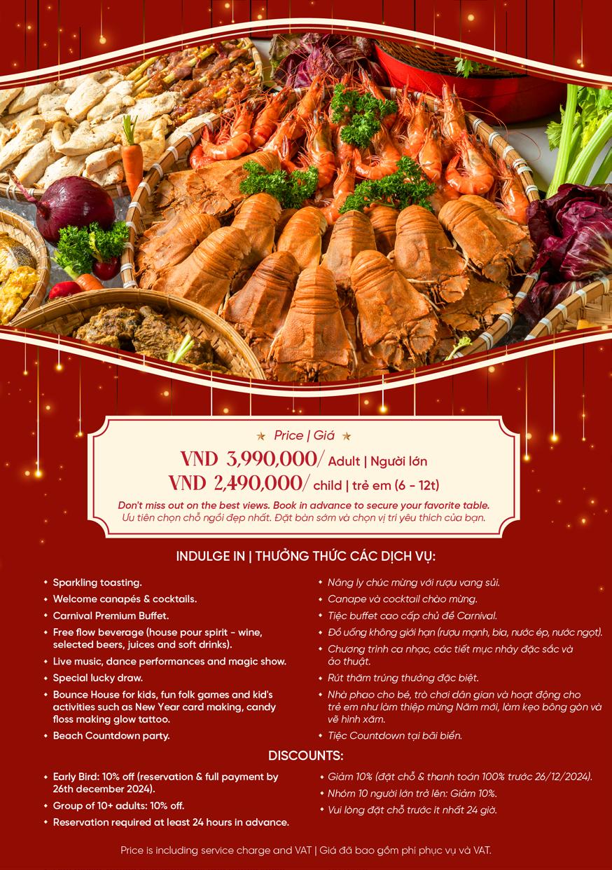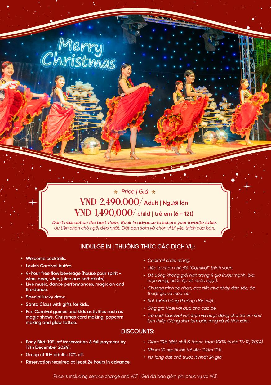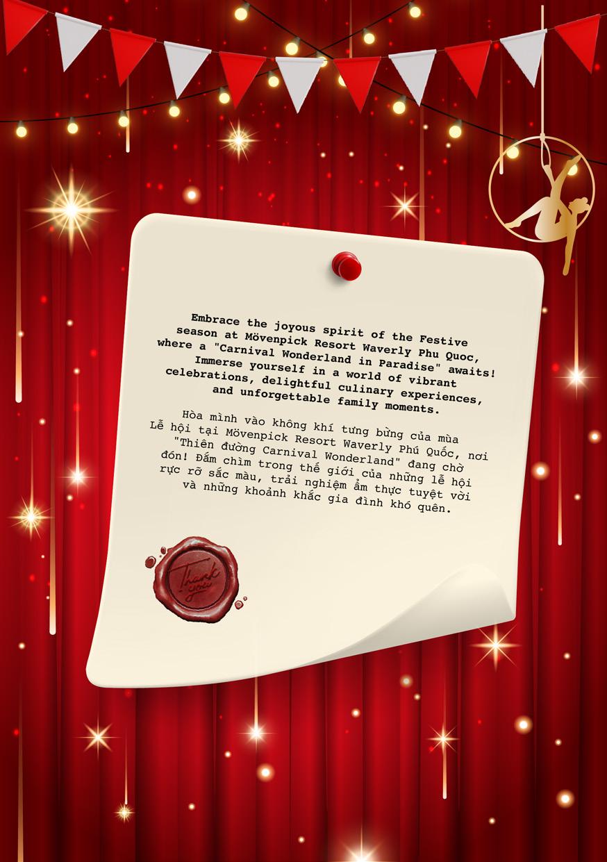 Join us for a journey of Festive fun, laughter, and unforgettable memories at Mövenpick Resort Waverly Phu Quoc. Indulge in a delectable carnival buffet, sip on free-flowing drinks, and be entertained by captivating performances.