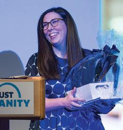 To honor Mary Ivers, who died in February 2022, DFSC Executive Director Lisa Nolan brought Ivers’ daughters, Carrie Ivers Reeuwijk and Kate Ivers, to the stage. They presented the Mary Ivers Success award to this year’s recipient, Domonique Broomfield.