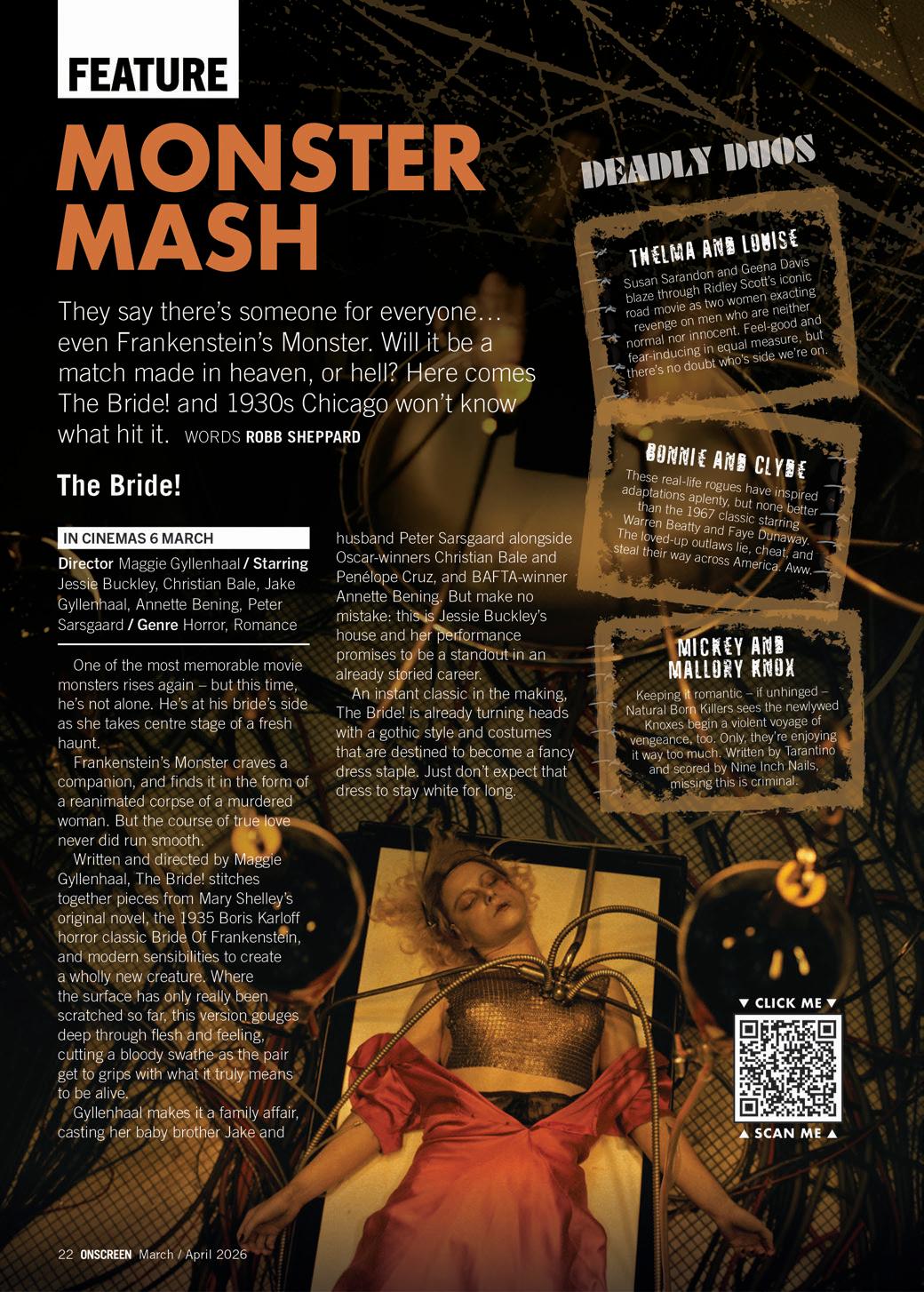 A lonely Frankenstein’s Monster travels to 1930s Chicago to ask groundbreaking scientist Dr Euphronious to create him a companion. Together, they resurrect a murdered young woman and The Bride is born. What follows is wilder, darker, and far beyond what they ever imagined in a bold new take on one of the world’s most famous stories. Jessie Buckley and Christian Bale ignite the screen as outlaw lovers in a wild, combustible romance!