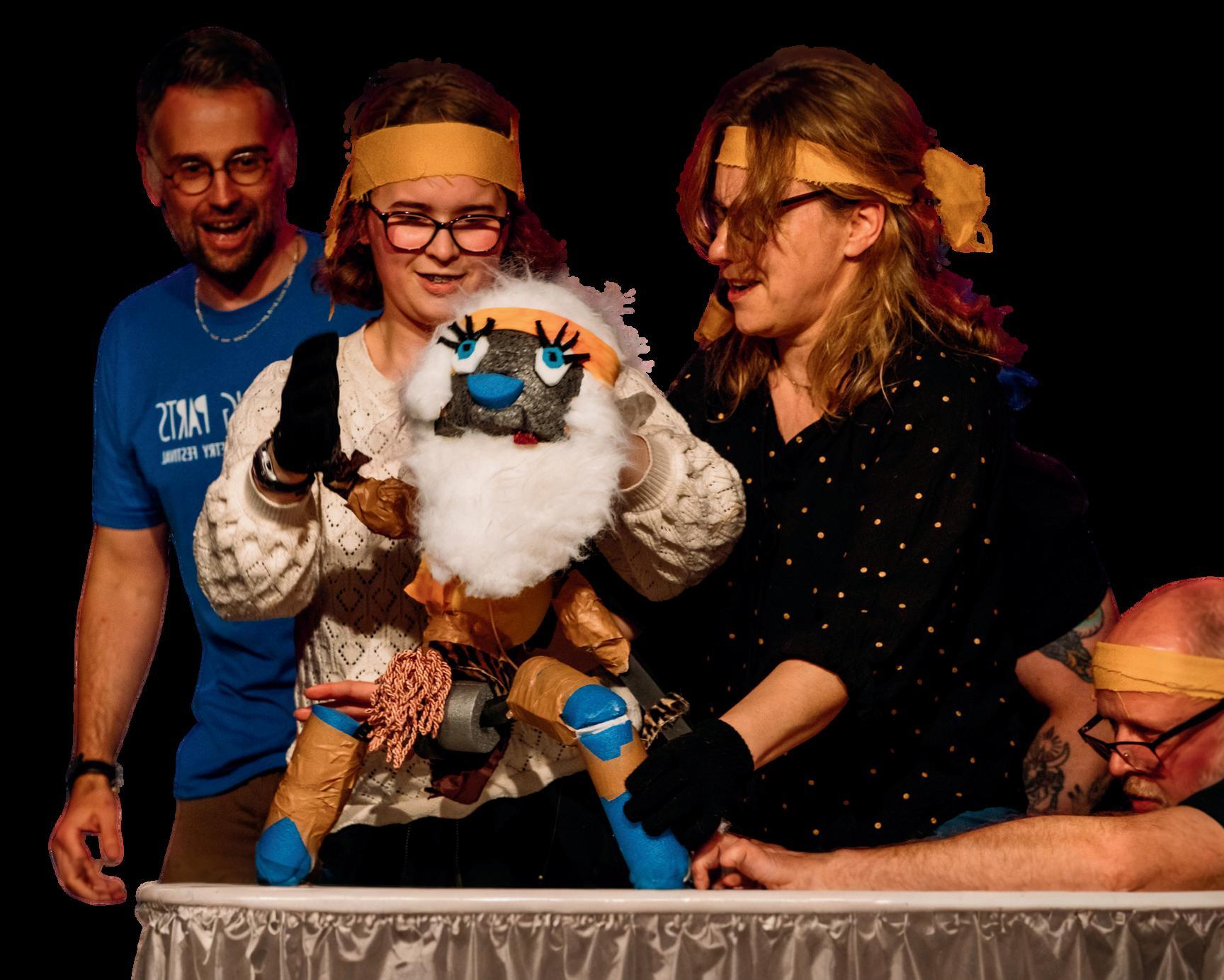 We hope there is something for everyone - whether you’re brand new to puppetry or a returning connoisseur - either way, thank you for picking up this brochure! You may not be 100% sure that puppetry is for you, or you may think that it is just for children. But we’re here to show you that puppetry is for EVERYONE (including adults!). Why not come down to one of the FREE events and see for yourself. We hope you have a great festival!
