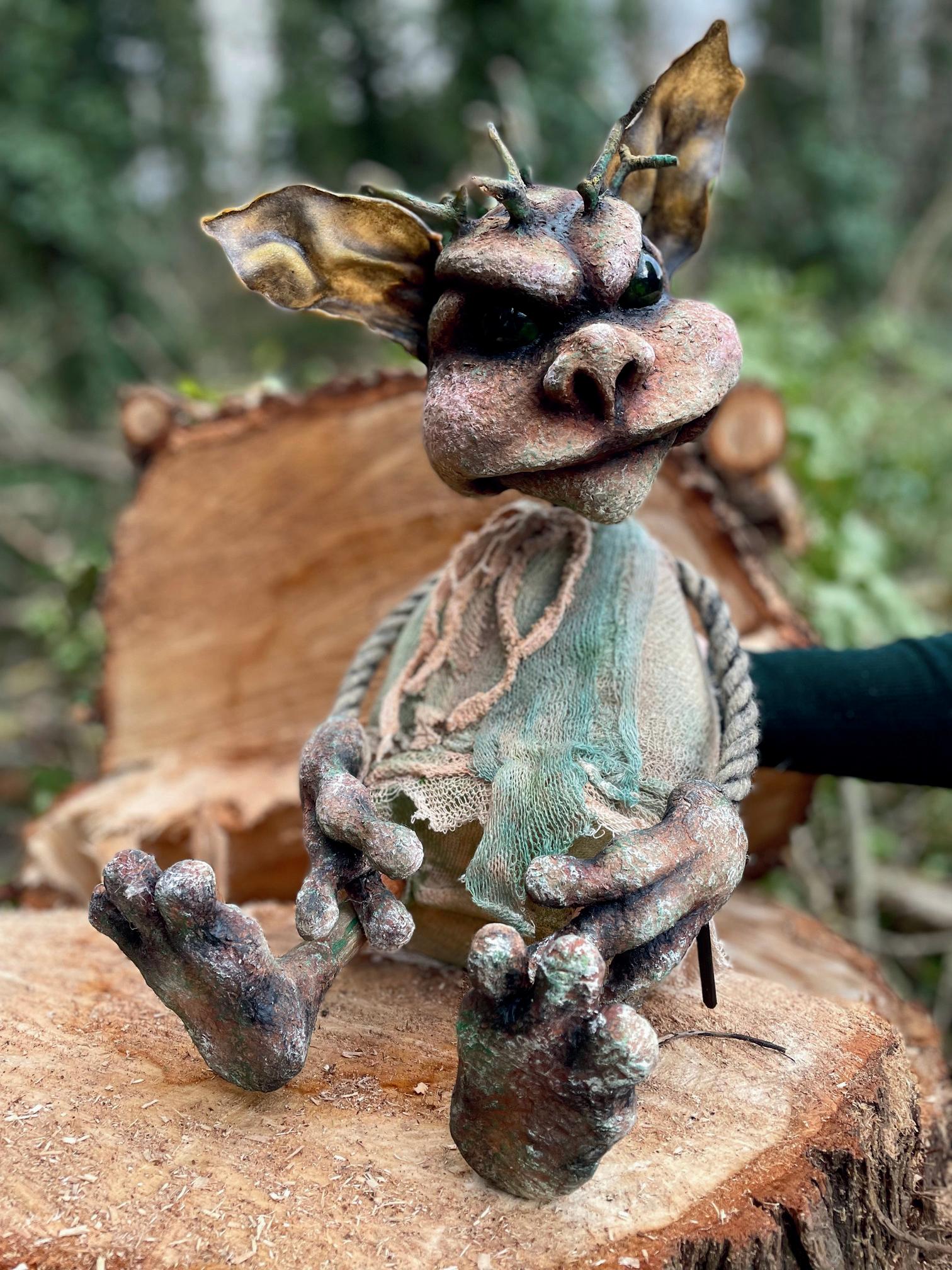 A 6-day adult masterclass to create your own beastly puppet character, inspired by gurning gargoyles, creatures from folklore, ancient tales, mythology or your own dreams and imagination. Learn to make and use paper clay from recycled materials, as well as using the thermo material, Worbla. You will construct a head mechanism and articulated body, and work with paint and fabrics to create a decorative finish.
