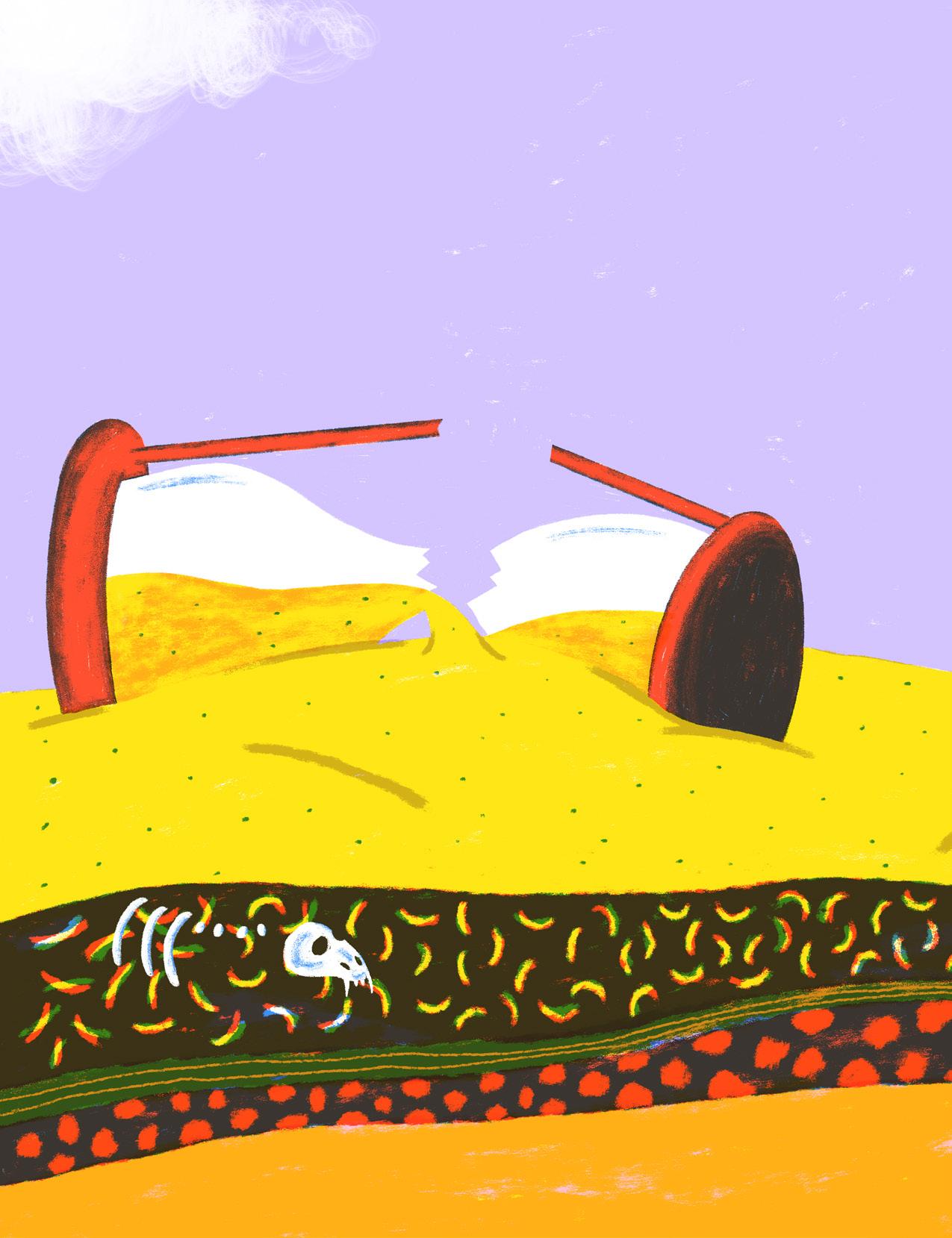 Cal Flyn tar oss med på en tur uppför de instabila skifferfragmenten på en av The Five Sisters sydväst om Edinburgh. Hon beskriver hur flora och fauna får fäste på platsen och gör utvikningar till bland annat diskussioner om värdet av styrd rekonstruktion av störda landskap. Hon verkar tycka att den bästa återhämtning är den där människans intervention står tillbaka till förmån för den återväxt som sker spontant utifrån den givna platsens förutsättningar.