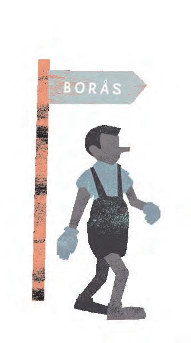 I STAD 44 har vi rest västerut, till Borås. Borås är känt för sin stora Pinocchio-staty av Jim Dine. Walking to Borås heter den. Jag befinner mig i Borås när det är som kallast i januari och kommer av en slump, vandrande till fots, rakt på Pinocchio bakifrån. Han går mot stan med bestämda steg i ett virrvarr av vägar. Borås är omringat av bilar, stora trafikleder går rakt genom stan: här saknas en ringled.