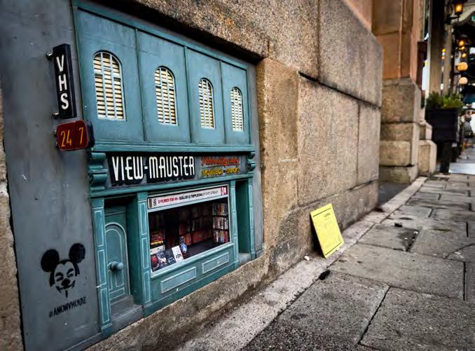 GATUKONST Strax före jul dök den upp, en videobutik på ett par decimeters höjd i centrala Malmö. Fylld med detaljerade miniatyrer av allt som hör VHS-uthyrning till, men skruvat i ordlekar som visar att den riktar sig till möss. I butiken View-mauster kan man bland annat hyra Råttan som visste för mycket med Chevy Cheese