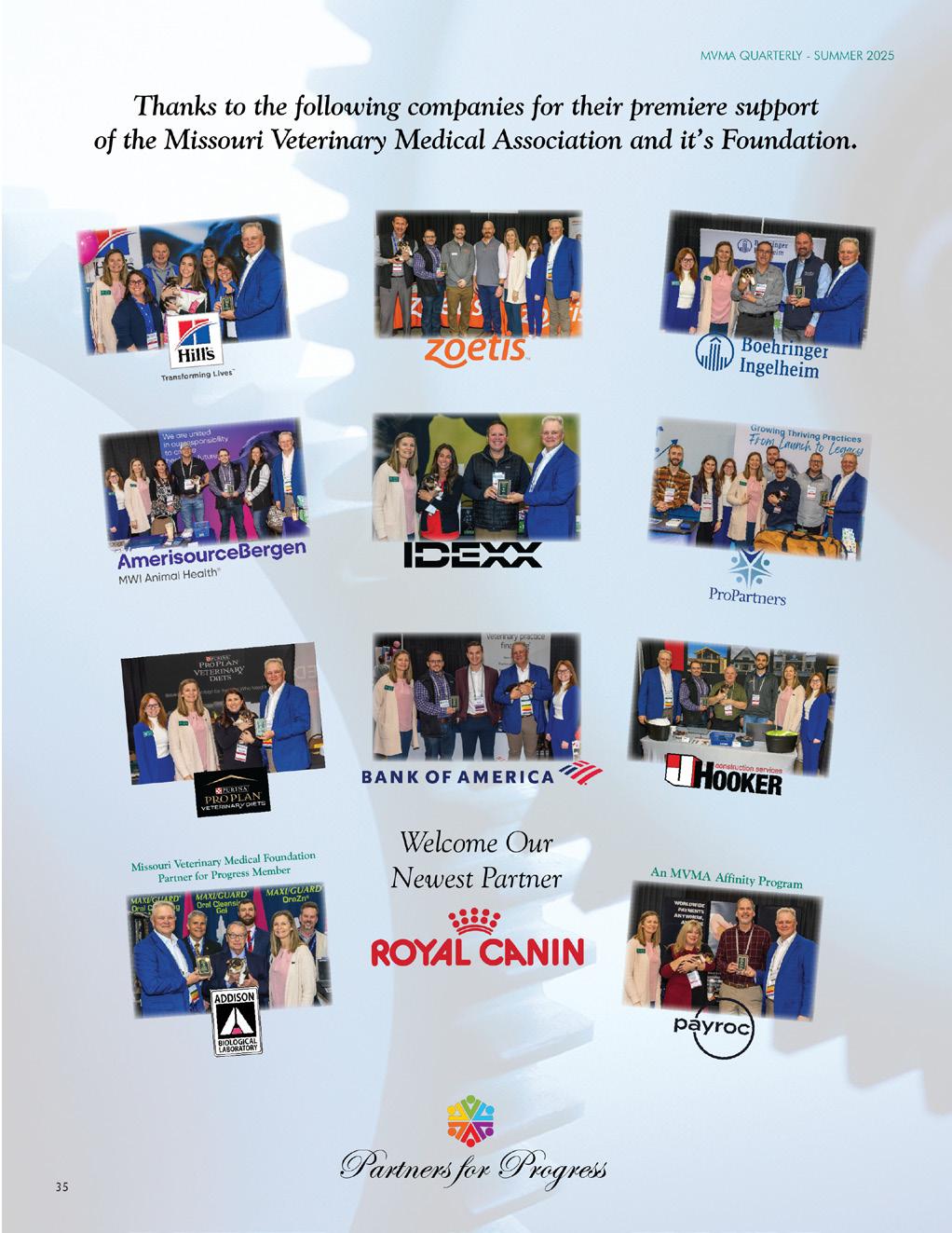 Thank you for being part of our MVMA Partner for Progress program. Your sponsorship this past year helped us create meaningful opportunities for our members and provide your company with visibility, access, and connection throughout Missouri’s veterinary community.