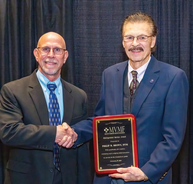 Philip Brown, DVM, Springfield, Mo., received the Distinguished Service Award from the Missouri Veterinary Medical Foundation (MVMF). Dr. Scott Fray presented the award to Dr. Brown.