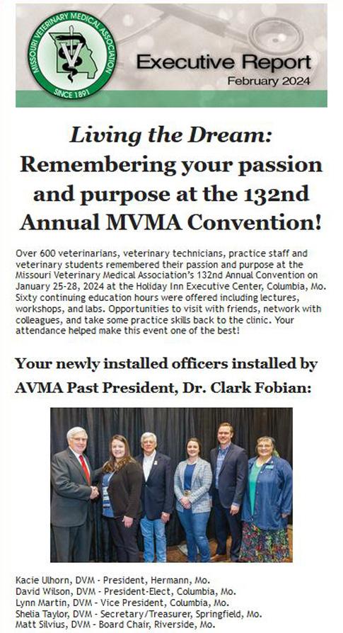 This electronic newsletter is packed with timely information Missouri’s veterinarians need. Over 2,000 MVMA active and student members look forward to each issue.