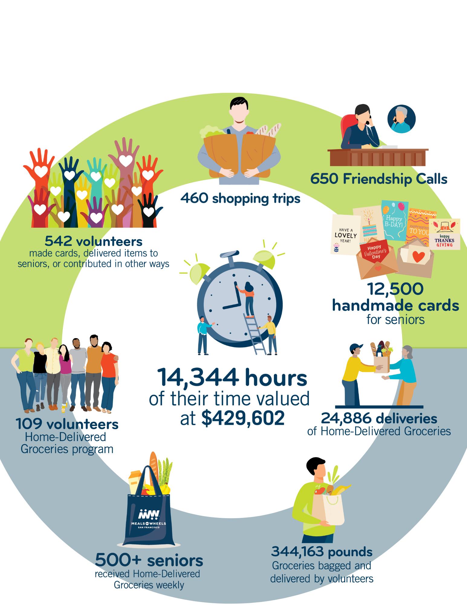 Yearly, we prepare and deliver more than 2 million meals to thousands of Bay Area seniors keeping them safe in their homes.