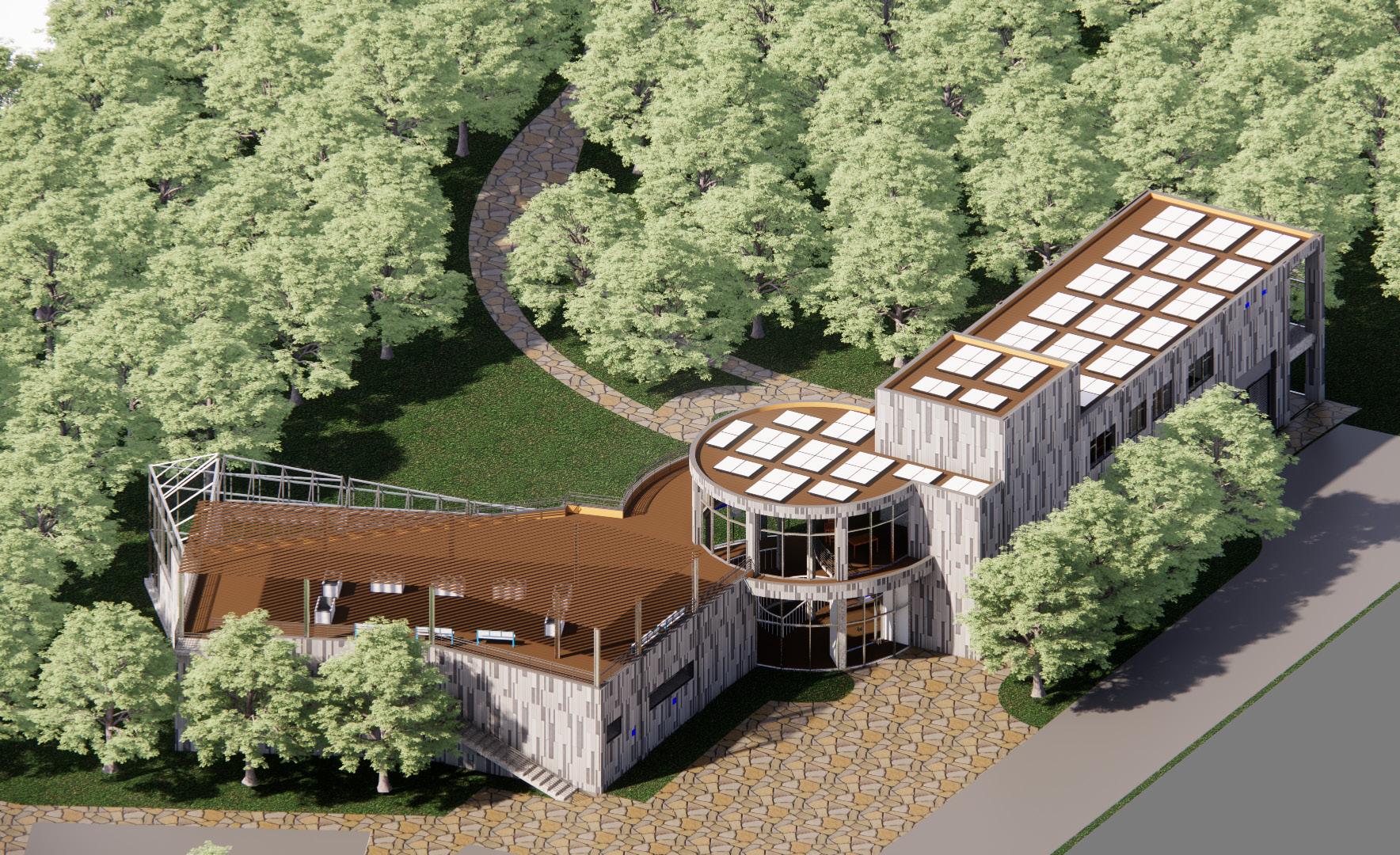 The mission of the center is to raise awareness about environmental issues by promoting and educating people about sustainable building design solutions. There are several key features of this design that can help in reaching the goal such as exhibition rooms, gardening classes to cultivate the culture of resource production and contribution, implementation of passive energy strategies, rational integration of the building into the site.