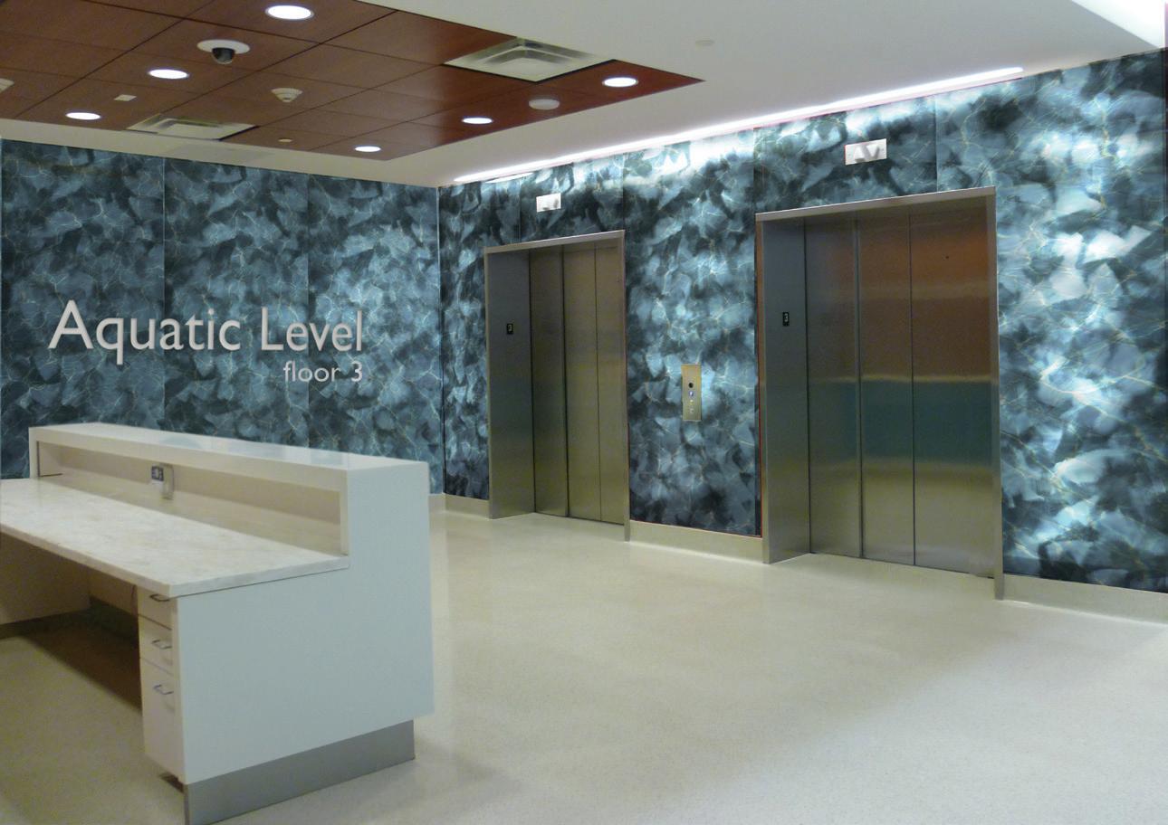 Combine one of Móz dynamic metal grains with your custom image to create a unique multi-layered surface. Digital images can be printed on solid aluminum for a variety of applications including metal wall panels, columns, room dividers, dimensional walls, wayfinding and art.