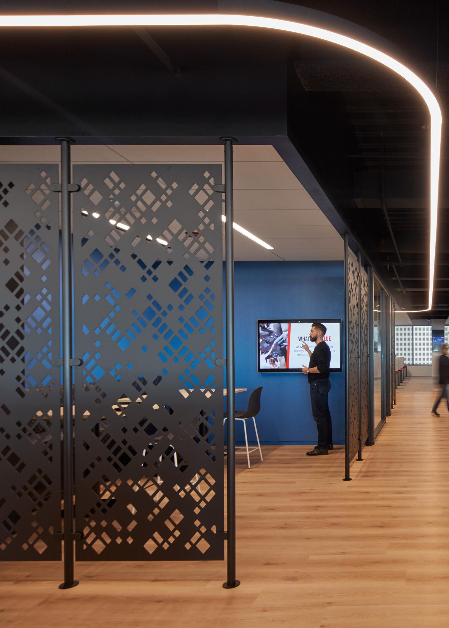 Panels include posts with brackets and grippers for a complete room divider kit ready for installation.