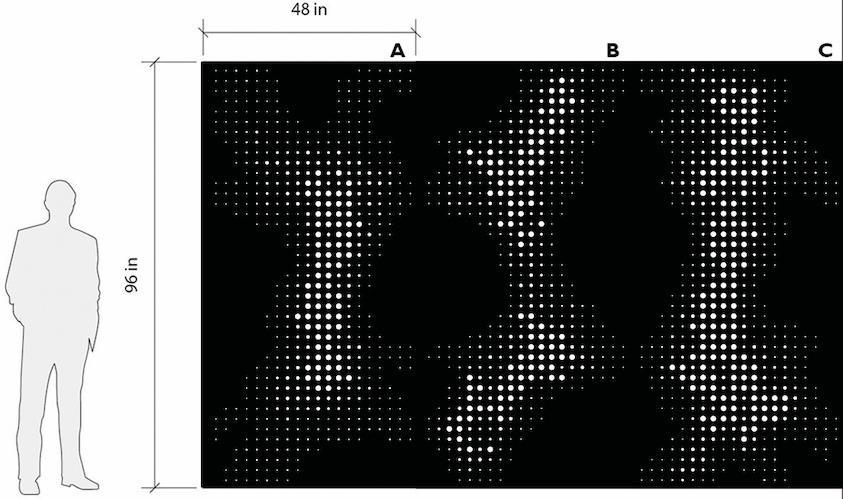 Available in over 40 standard 4’x 8’ size patterns with the ability to customize the size and shape of the metal cuts to control the amount of light flow throughout the environment. Click on pattern names below to be taken to a detail page.