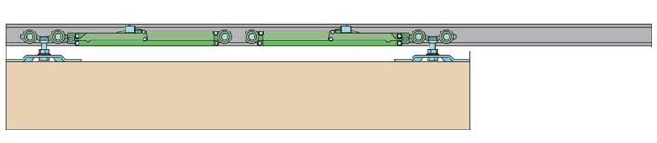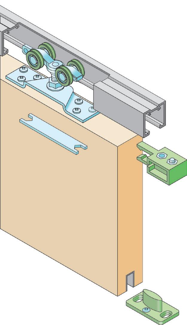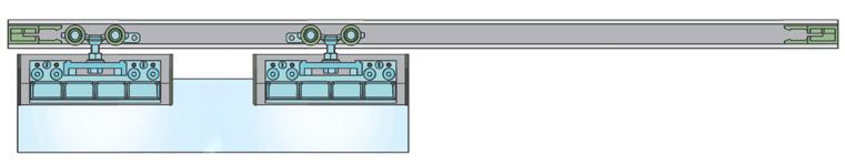 Riešenie pre jednokrídlové posuvné dvere so zapusteným kovaním do 80 kg s obojstranným spomaľovačom * Pre krídla menšie ako 720 mm je možné použiť iba 1 ks spomaľovača. * Pre krídla menšie ako 720 mm je možné použiť iba 1ks spomaľovača.