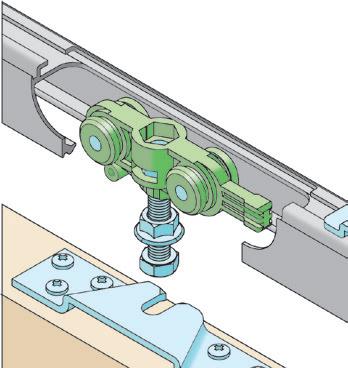 Posuvný systém LEGGERA výrazne šetrí miesto. Hliníkové alebo drevené dvere s týmto posuvným systémom zaberú len 0,1 m2, čo oceníte hlavne v malých interiéroch. Tento základný posuvný systém má ložiskové posuvné vozíky a umožňuje zavesenie krídla dverí až do váhy 70 kg.