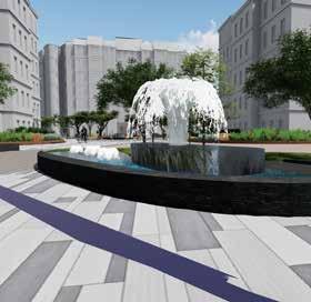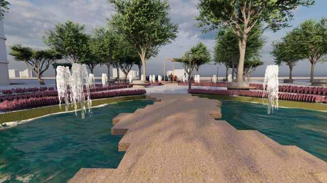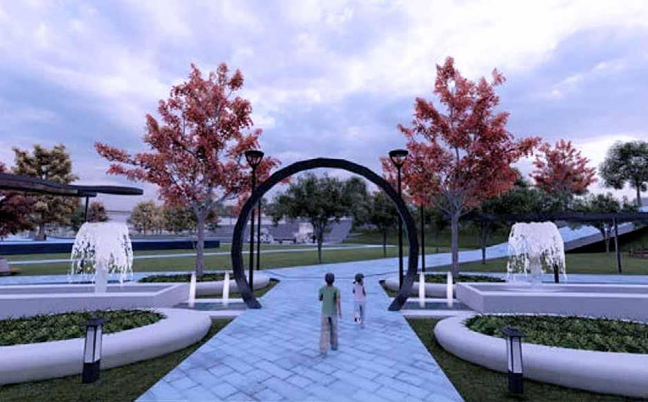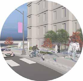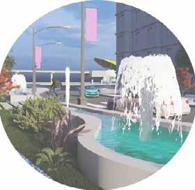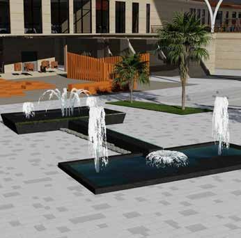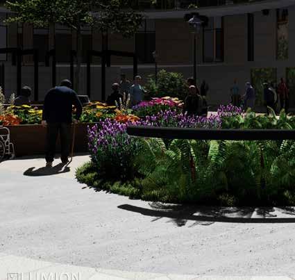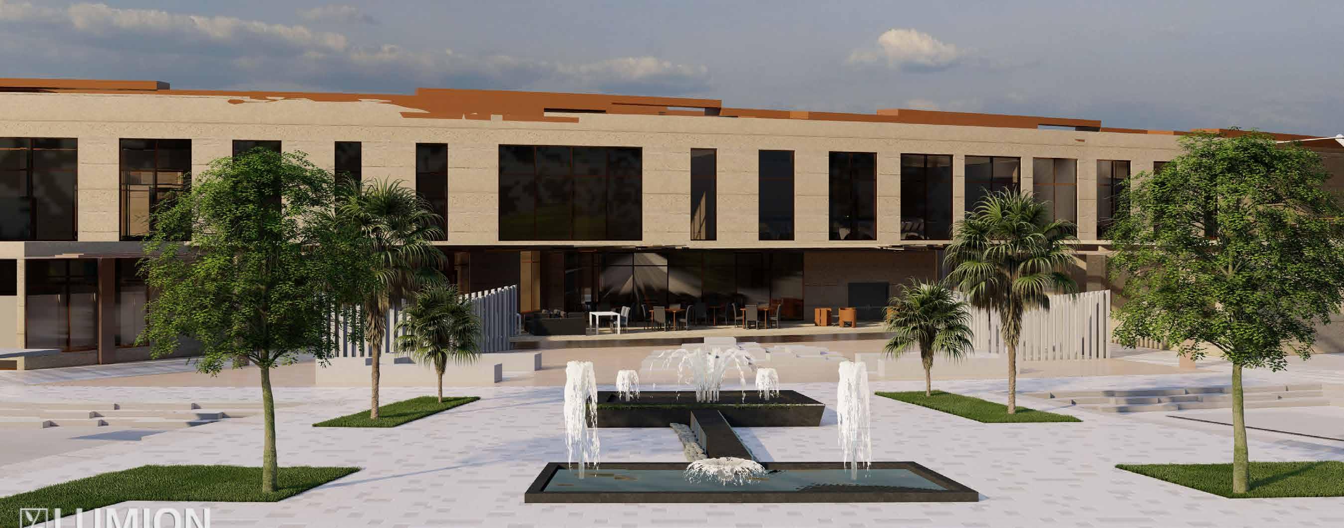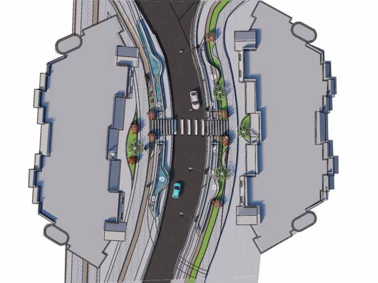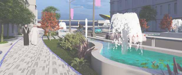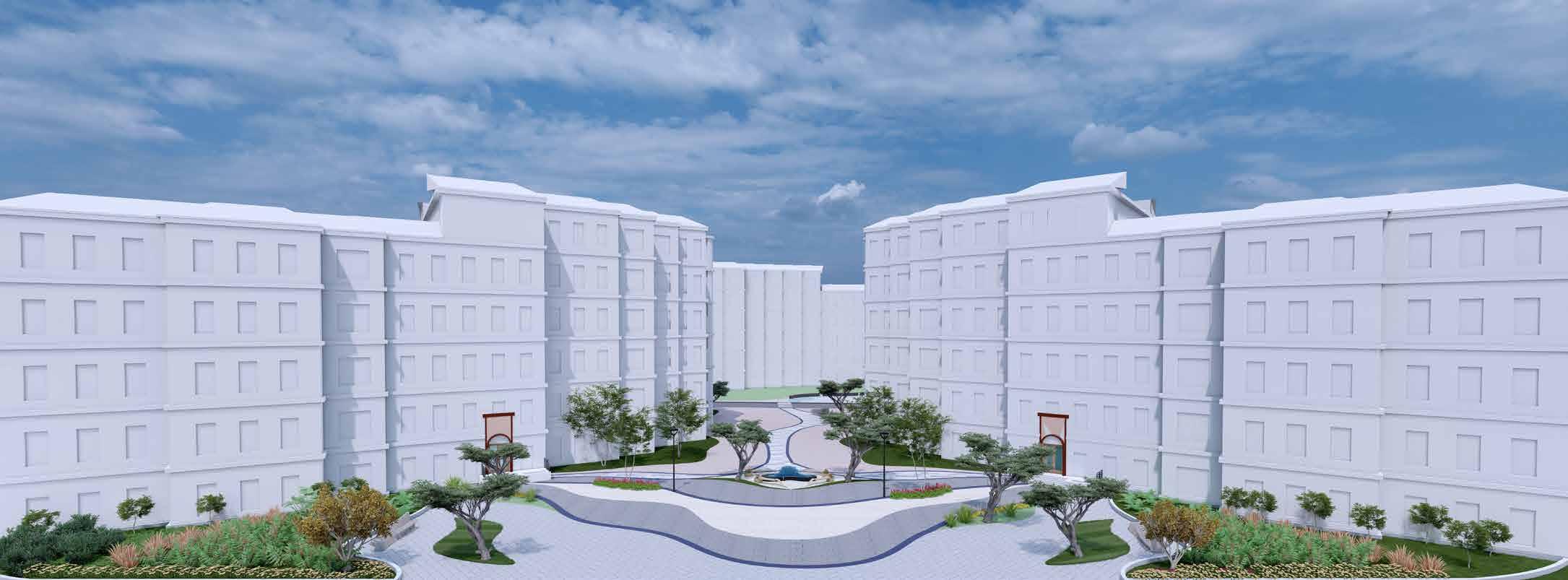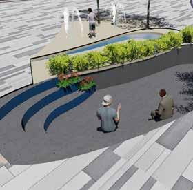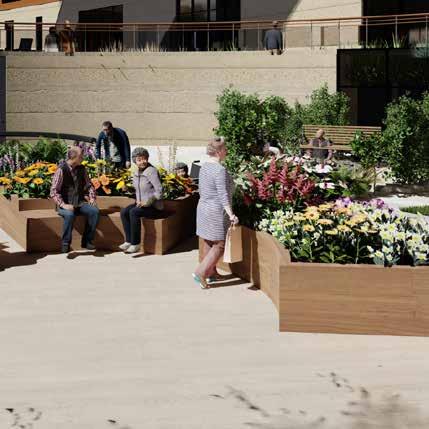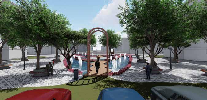 Public plaza becomes a hub for bringing community together. Green pockets are provided with seating as socializing zones.