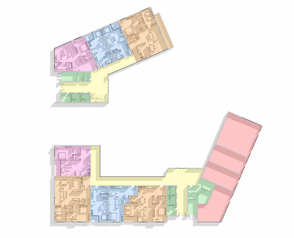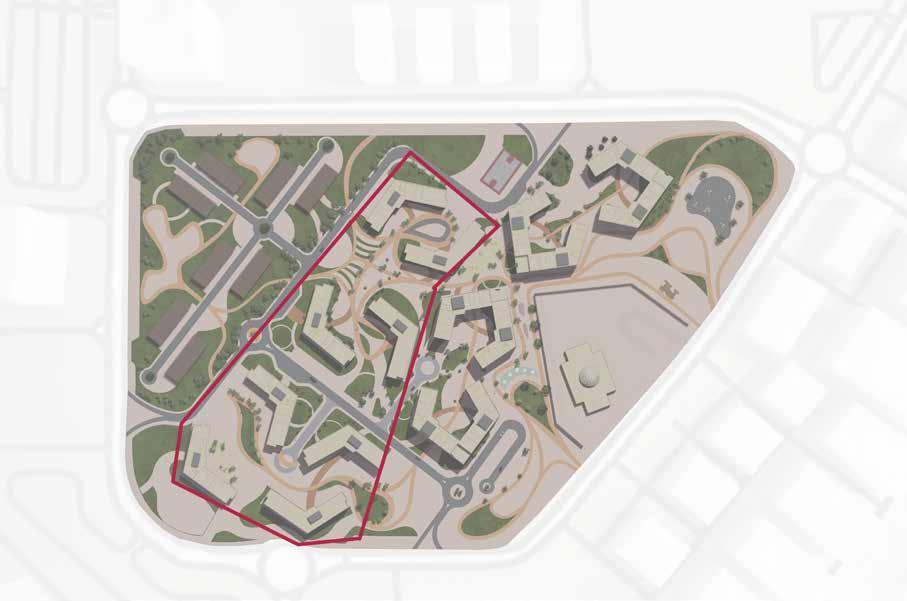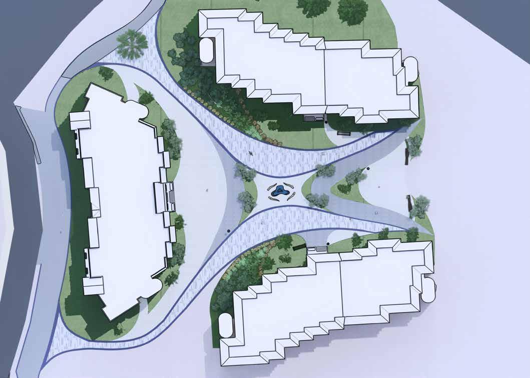 11 Megha Pramod SITE PLAN TOTAL BUILT UP AREA: 18,108 sq.m SCALE 1:1000 Ground Floor First Floor Second Floor Service Core Recreational zone Wellness zone Administration block Intergenerational Zone Learning zone Residential block Vocational Centre Staff accomodation zone Circulation Retail block