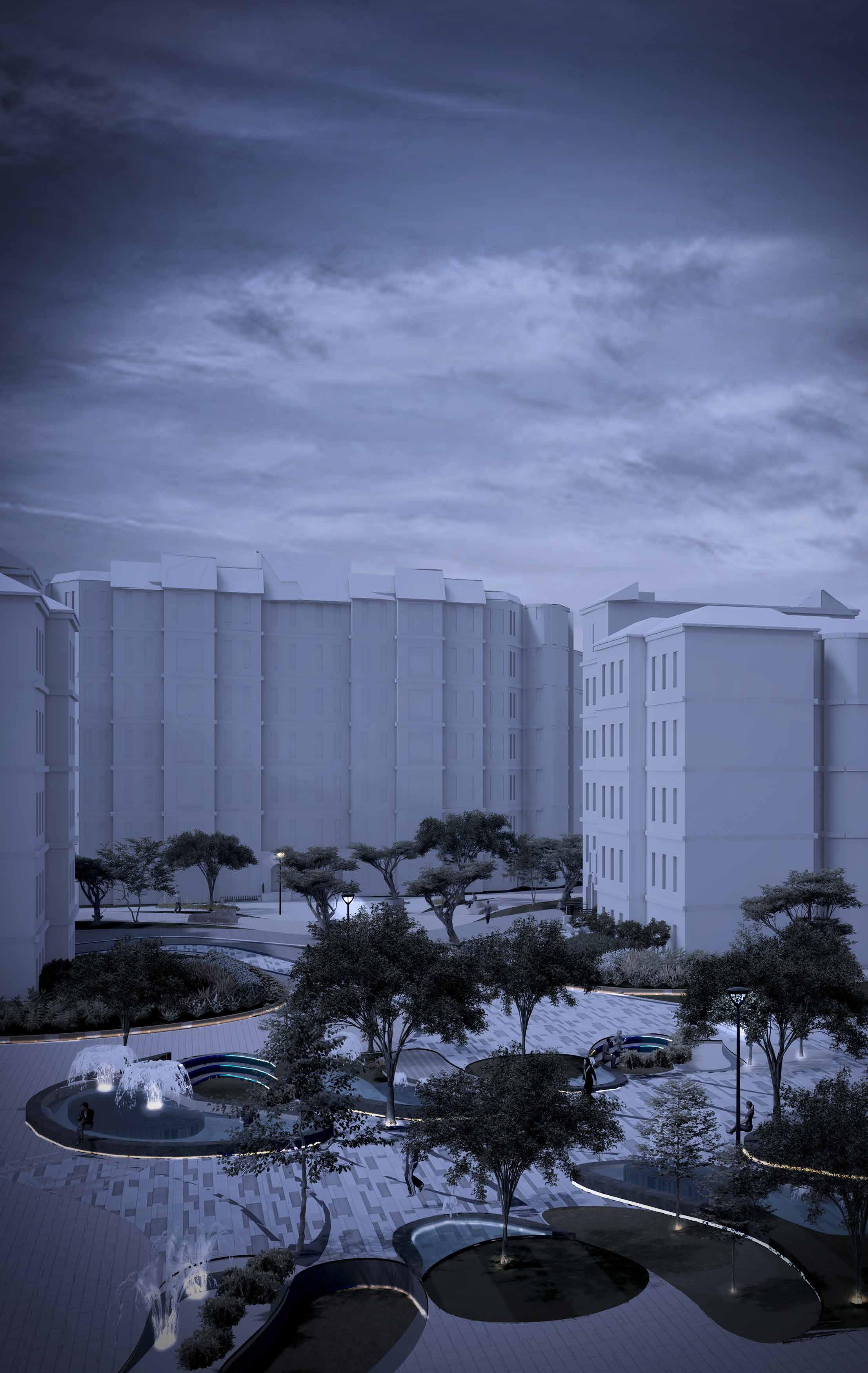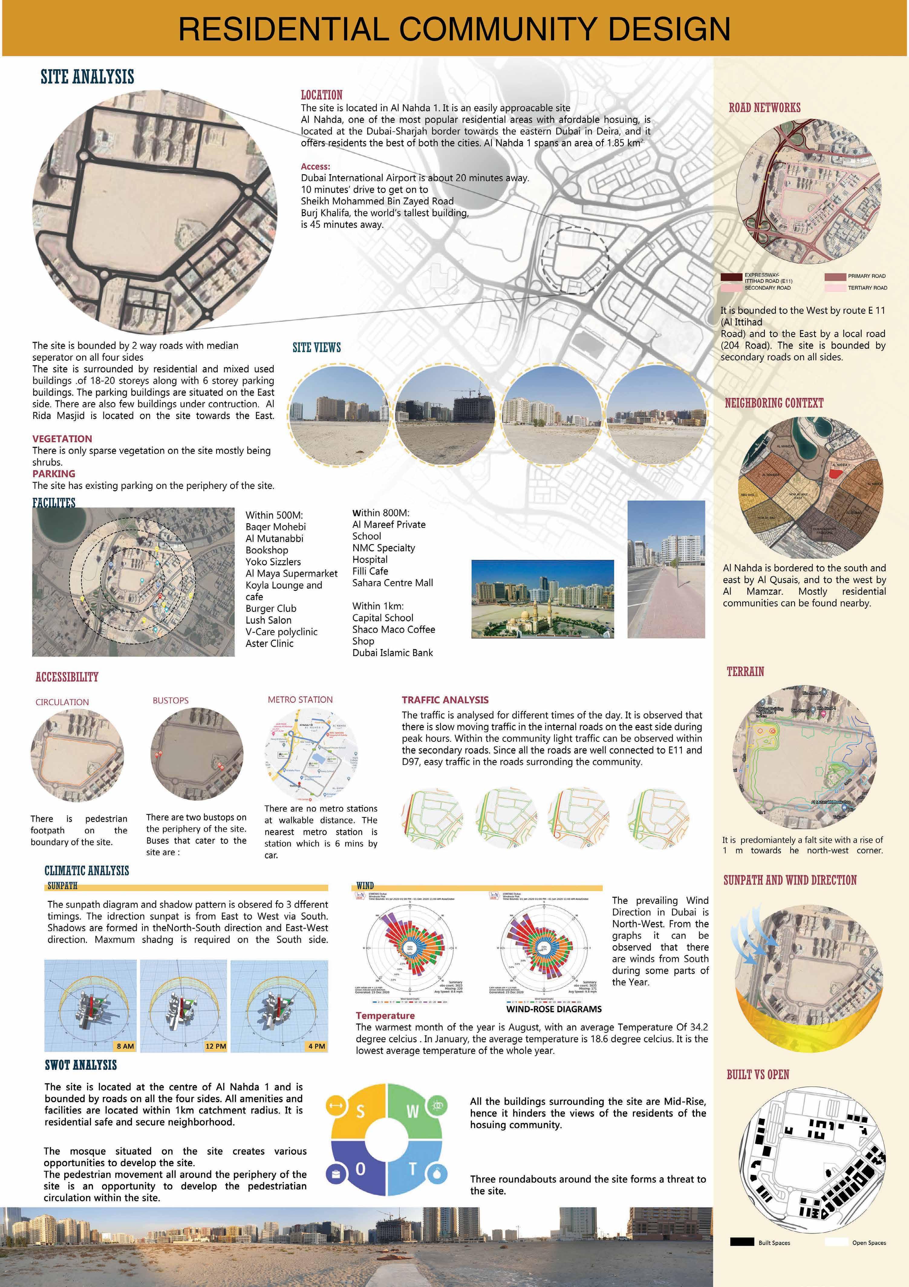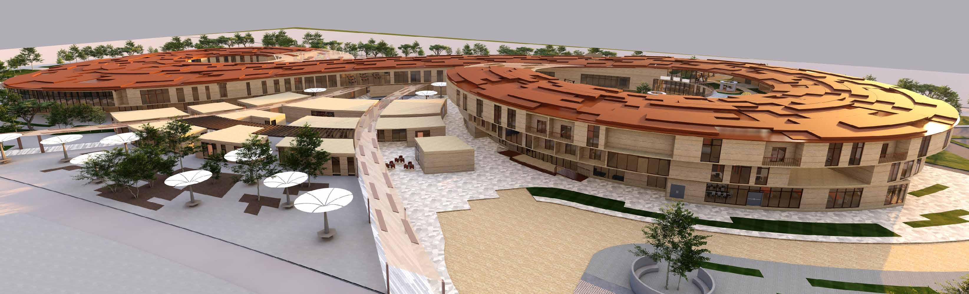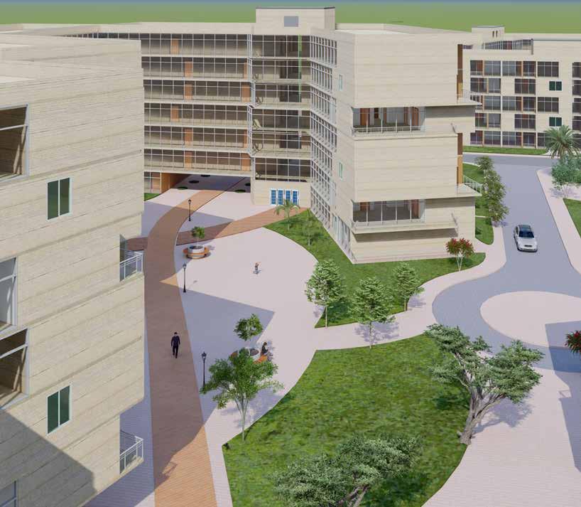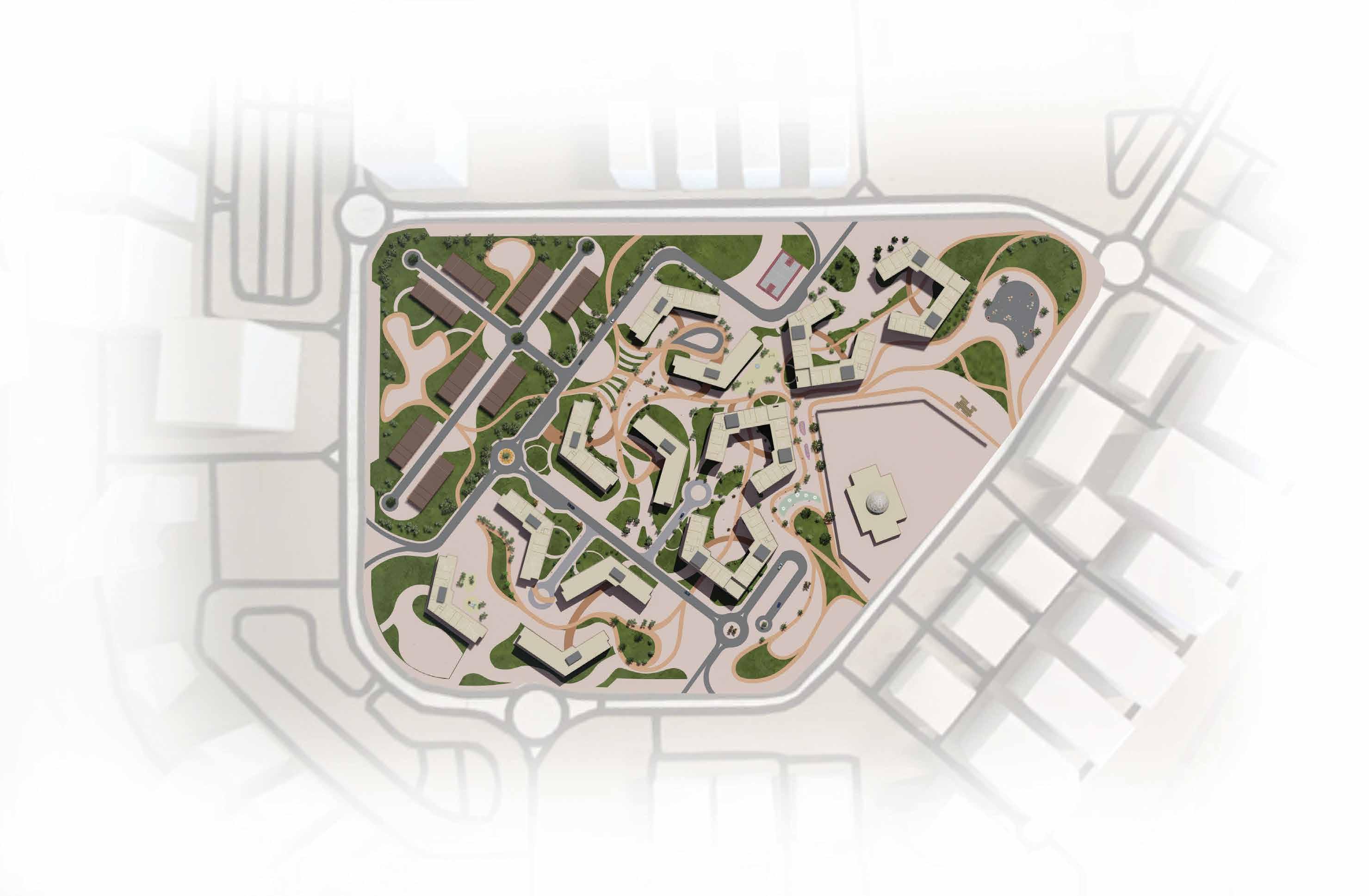 Senior citizens centre is located to the east of the site. Functions are categorized within the building by analysisng the requirements of the senior citizens residing in UAE. The block is mainly divided into 4 zones: Vocational Centre, Recreational zone, Wellness zone and Residential zone.