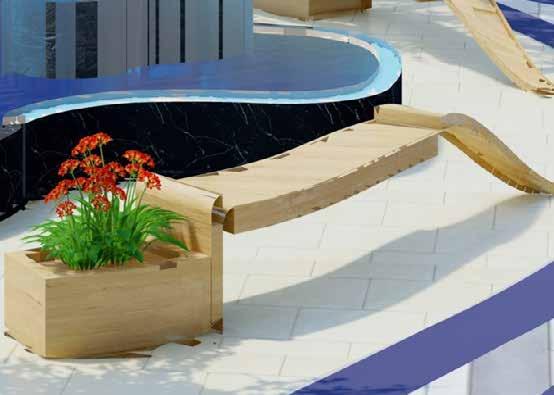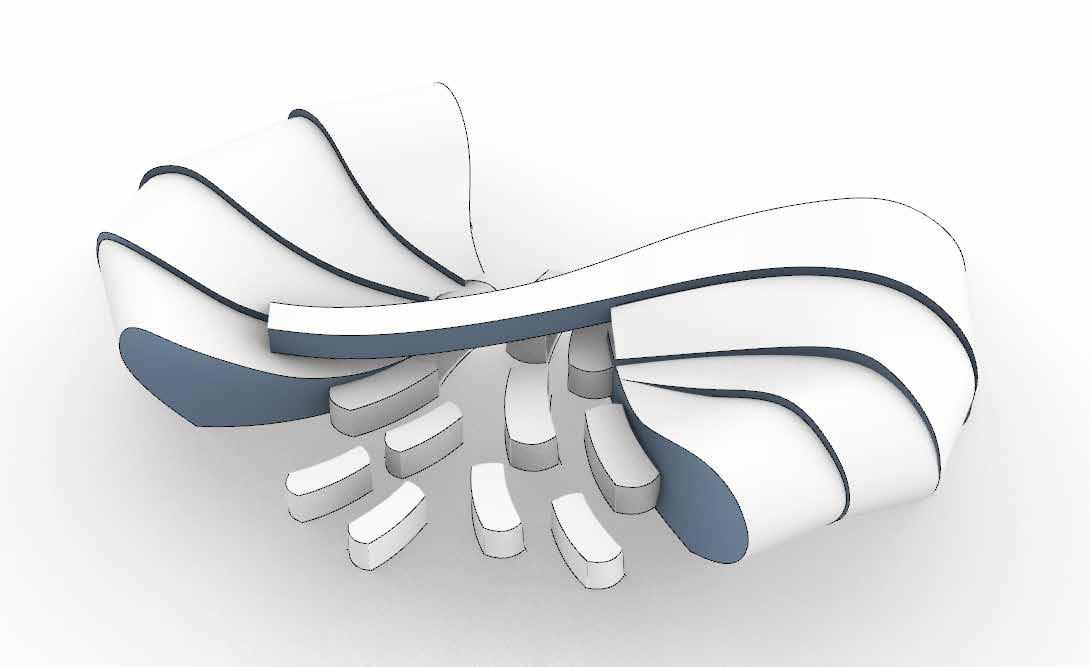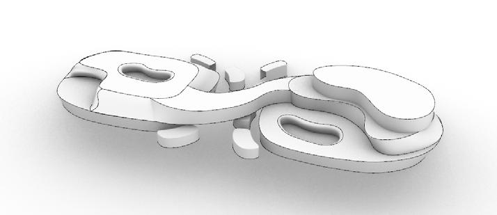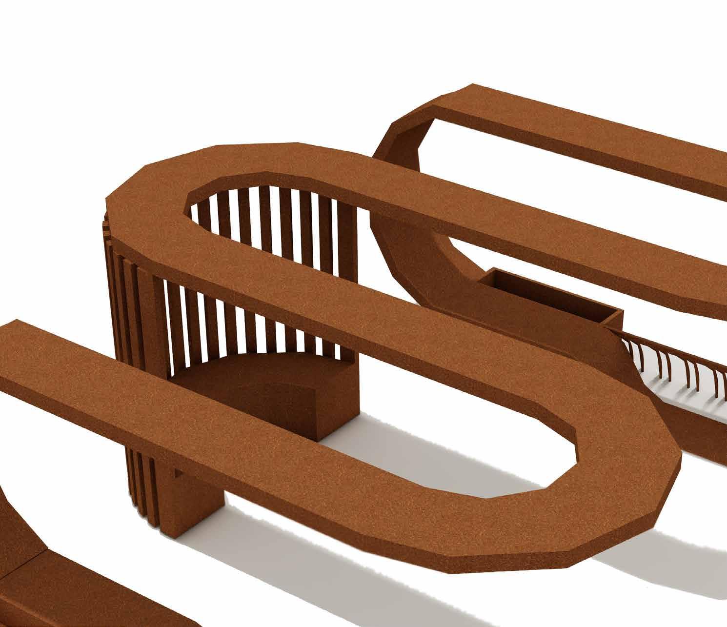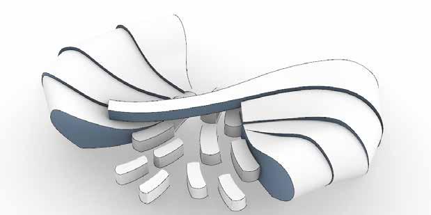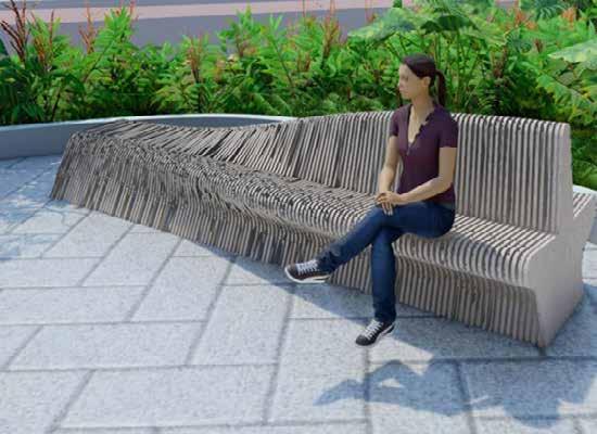 A multisensory seating and relaxation space. Convivial serves as a pause point during the journey through Dubai Design District. It may be used as seating as well as an element to elicit all of the senses within. The form derived from the waves of play moulds to create a multi-sensory functional installation as a point for seating, bicycle stand and for rejuvenation with music.