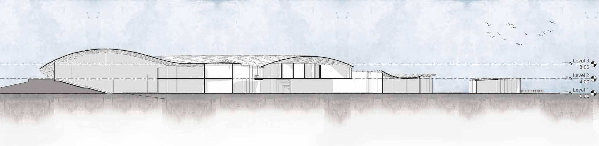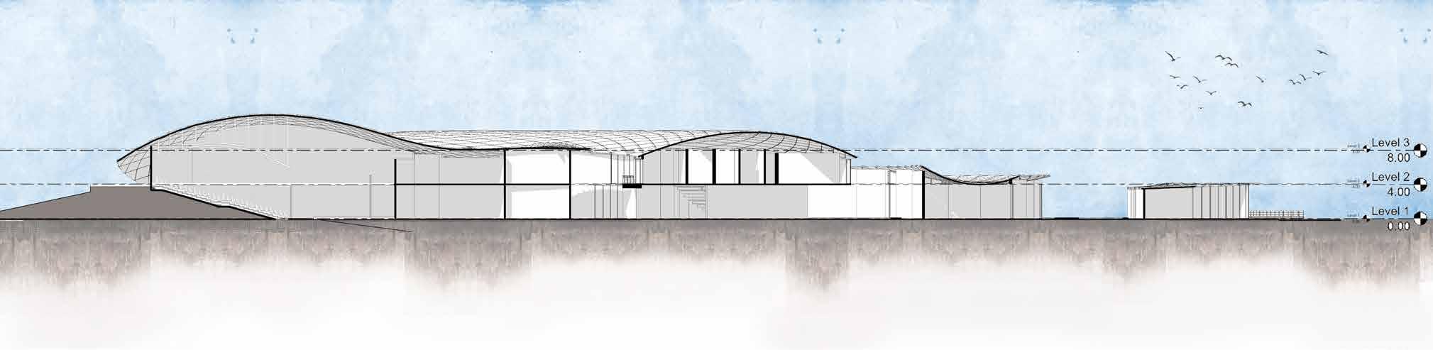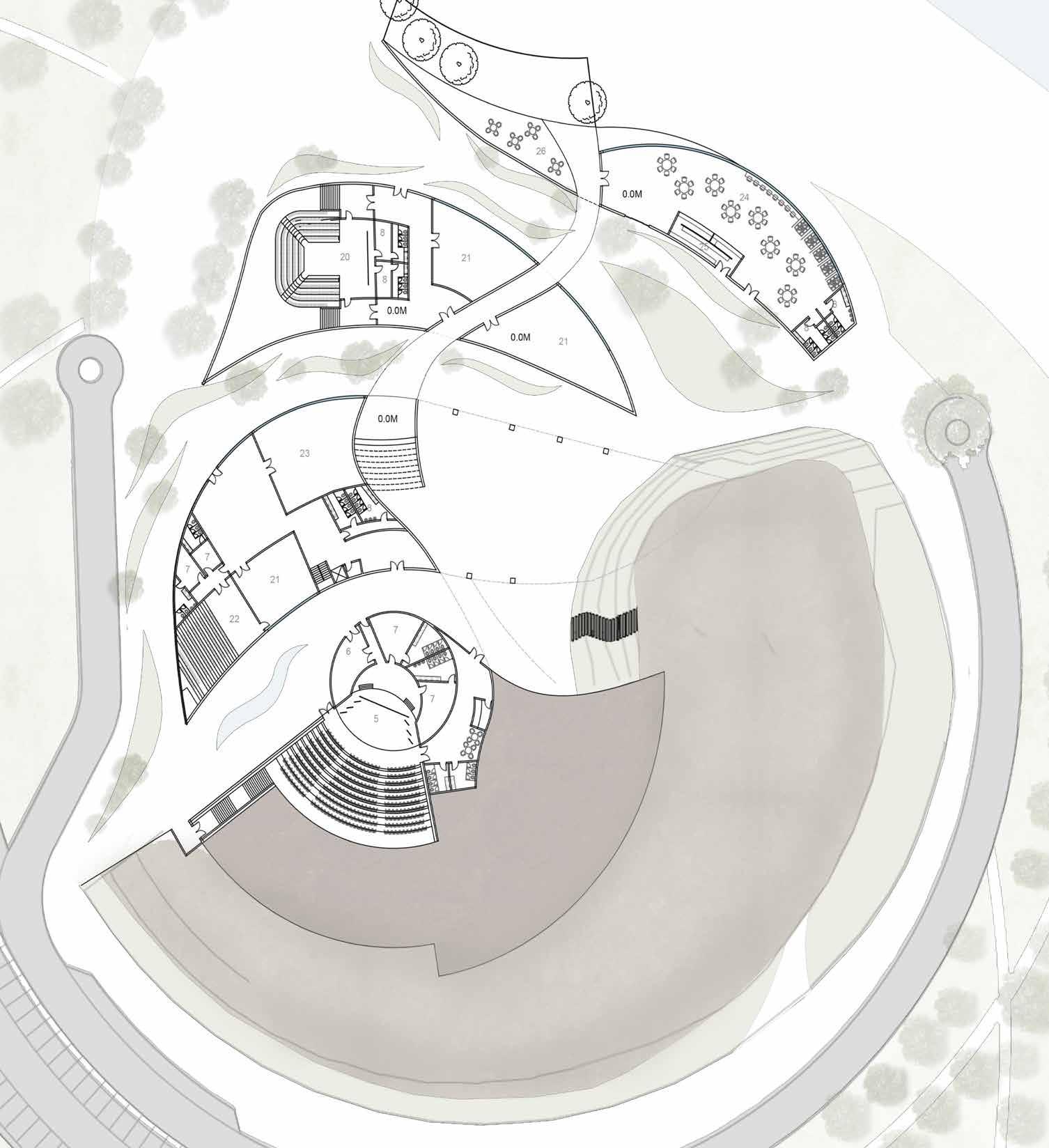 1. Restaurant 2. Supermarket 3. Food Kiosk 4. Toilet 5. Children’s Centre 6. Filtration Room 7. Pump Room 8. Storage SCALE 1:400