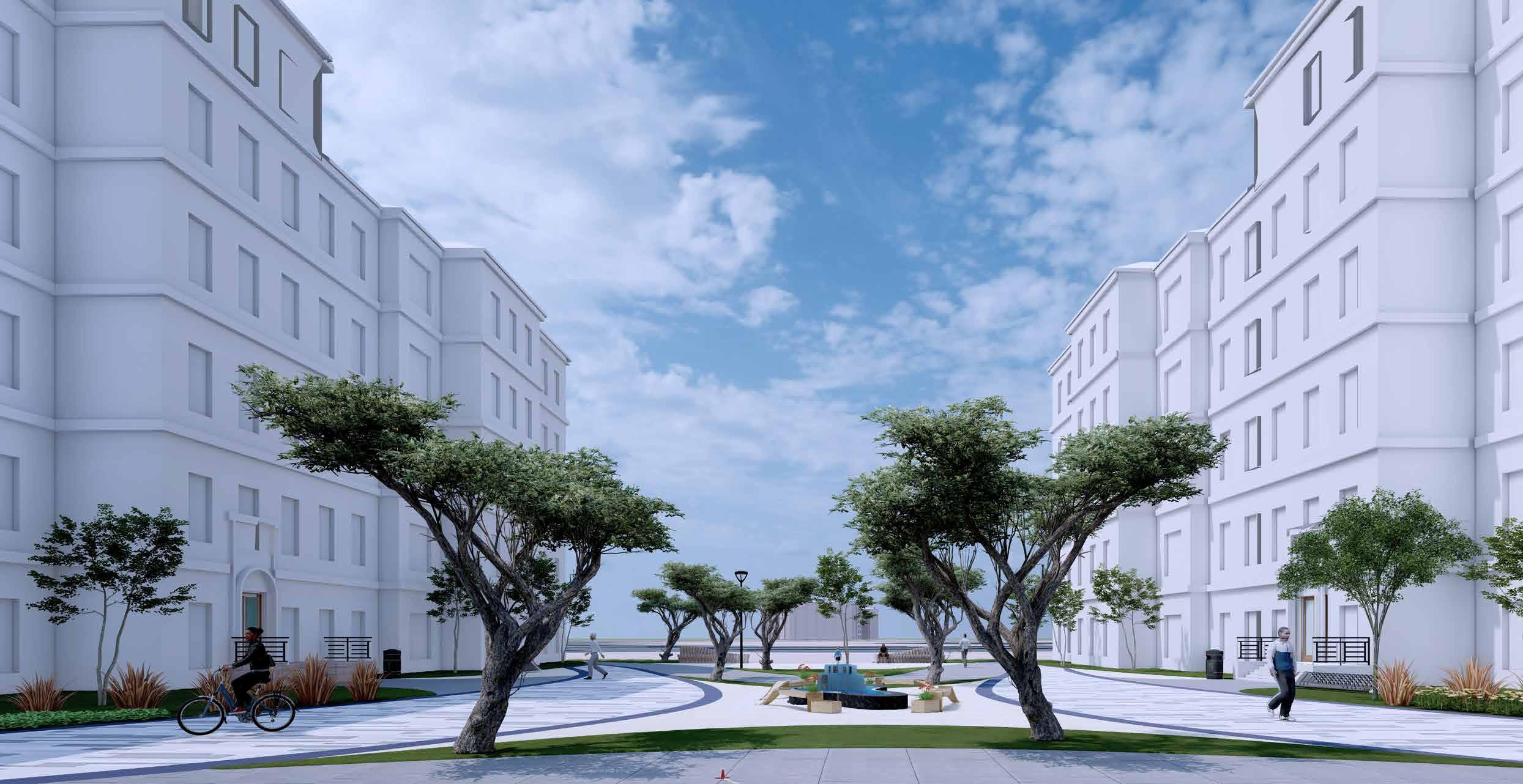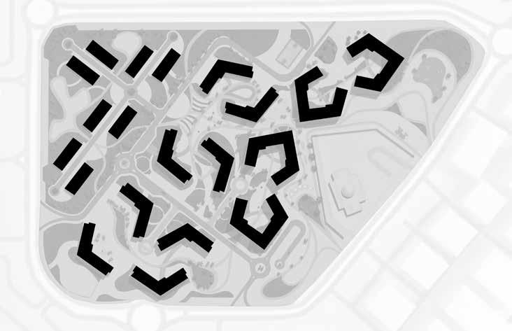 Courtyards are created as punctures in each block to enhance the micro-climate.