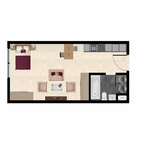 1. Studio 2. Studio: Type B 3. 1BHK 4. Studio Double Occupancy 5. Staff Accomodation 6. Staff breakout Room 7. store 8. House Keeping 9. Laundry Room 10. Telcommu Room 11. Control Room 12. Maintainance Room 13. Electrical Room 14. Data Room SCALE 1:400
