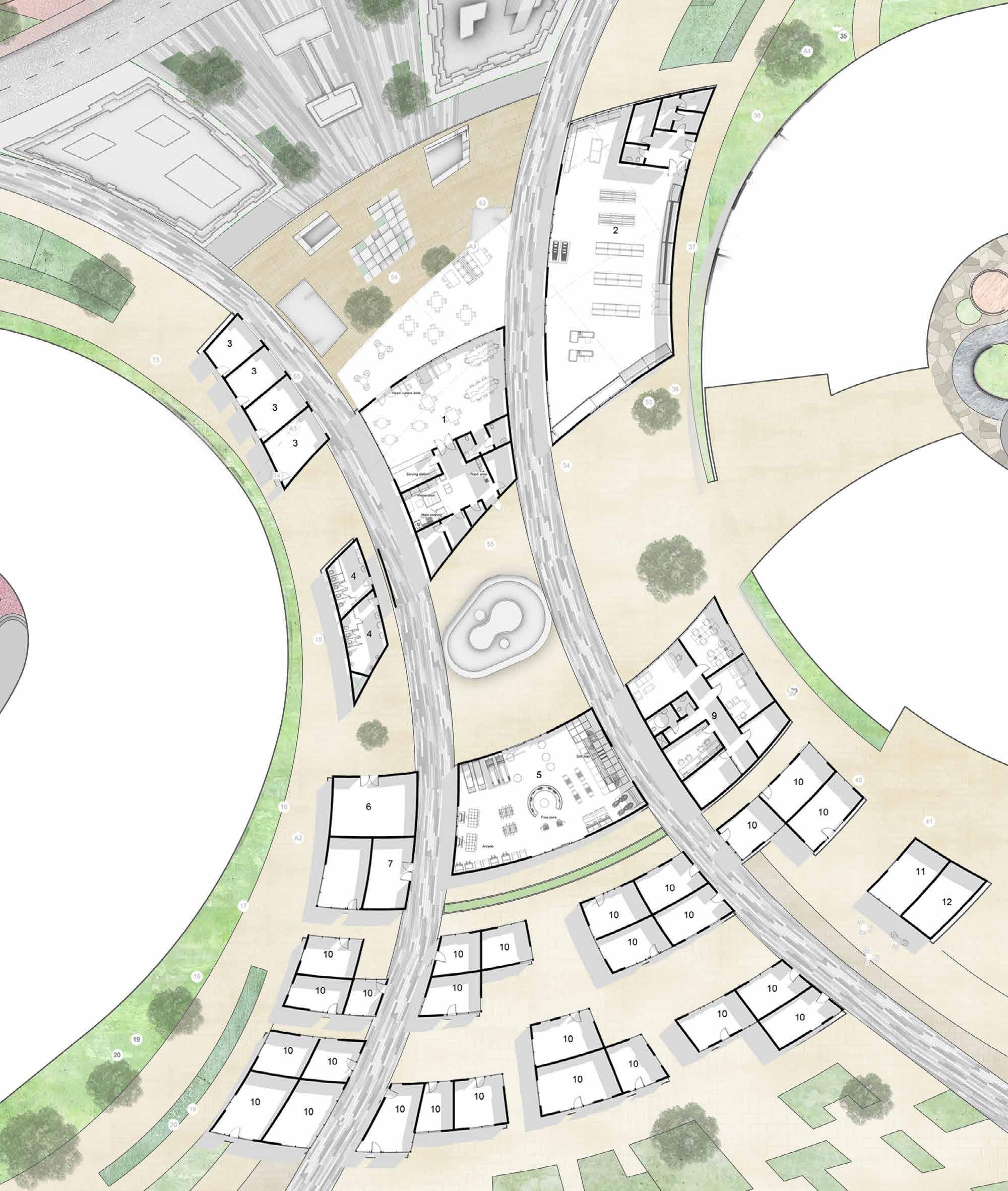 Senior Citizens Centre block 6. Drop off/Pick up 7. Public Plaza 8. Retail block 9. Parking 10. Loading Unloading deck LEGEND