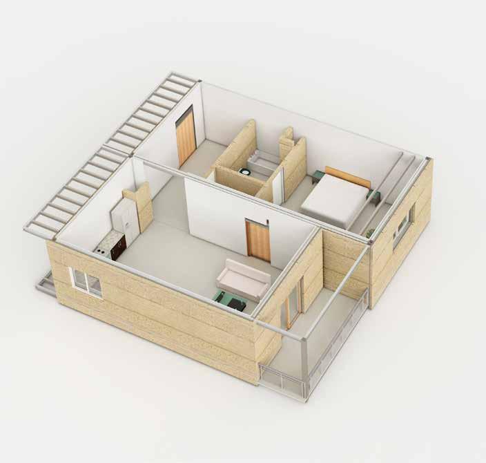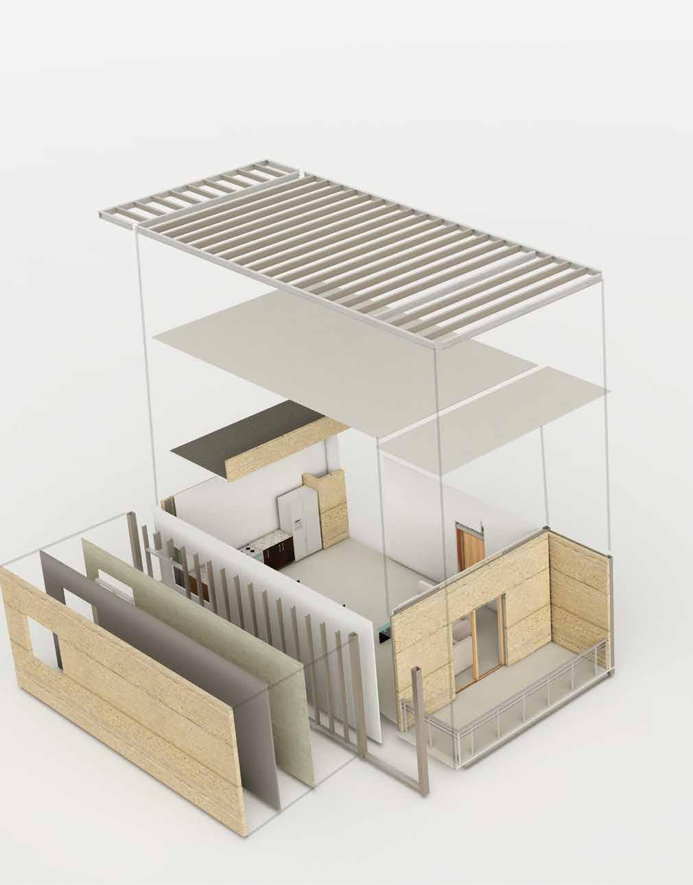 The panels are custom-manufactured to meet the building’s specifications, then crane-guided onto the building site. CLT panels are usually three, five, seven, or nine layers of 2x6 lumber. For this prototype, 5 ply timber is used. CLT is also considered sustainable an economical, in part because it’s made from wood, which is a renewable resource.