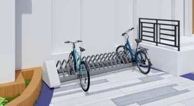 The installation also creates space for bicycle stand next to the planters. The bicycle stands are provided behind both the linear seatings. Emerging from the curves of the seating the matte finish bicycle stand serves for 10 bikes maximum.