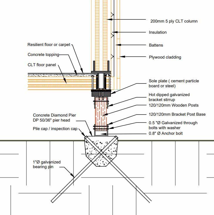 x200m CLT column Wood floor panel Wooden posts Diamond Pier foundation