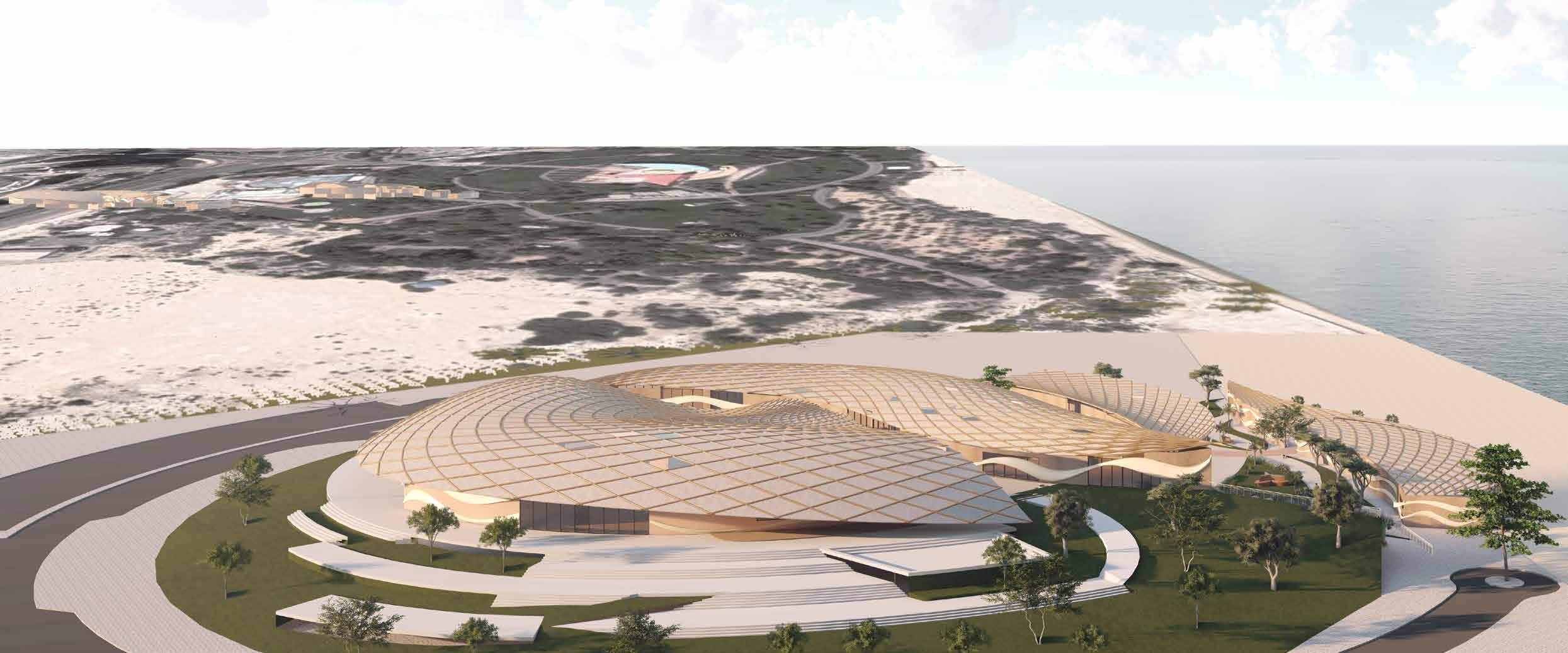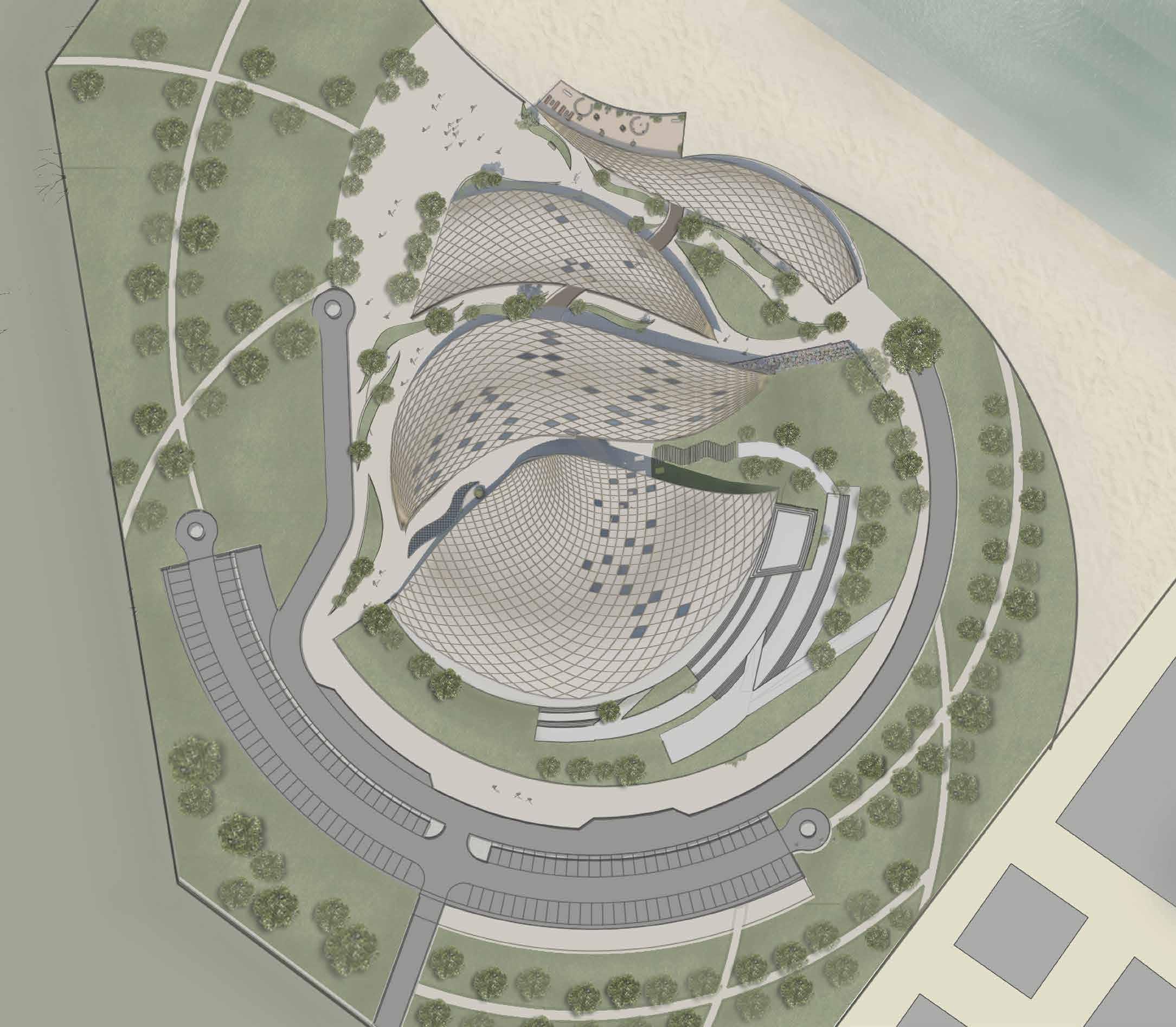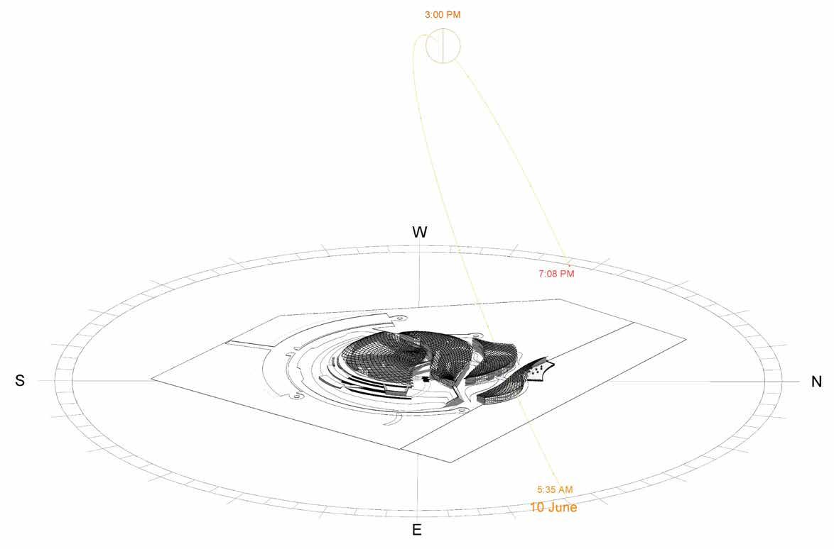 The building has adopted a circular form in order to minimize the solar heat gain.