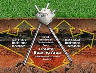 This composite pier combined with the bearing pin group forms the Diamond Pier system—a hybrid of familiar concrete and steel materials. It provides a solid, stable, economical foundation that both captures and preserves the supporting strength and natural functions of the Earth’s soil .