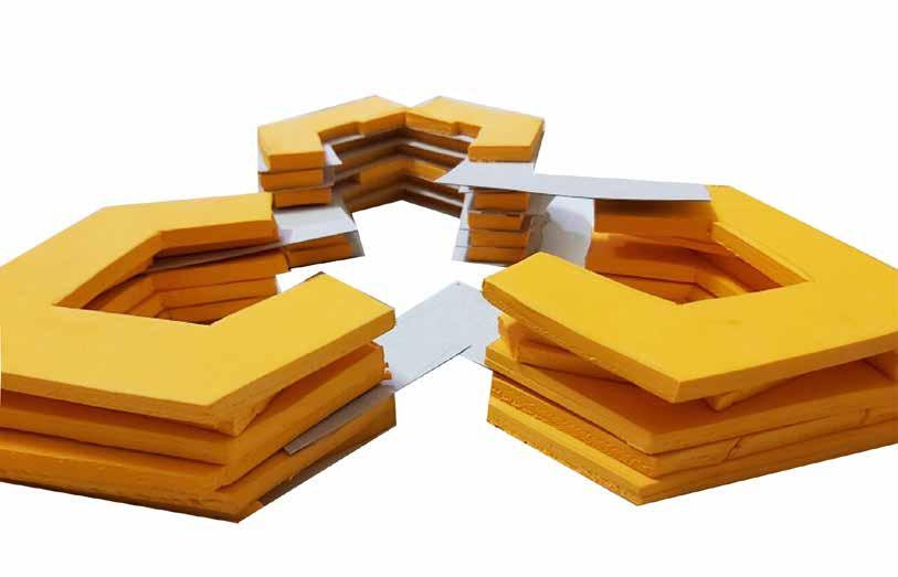 Cork is a unique material characterized by its porous texture, softness, and lightweight quality. There is a growing move to use sustainable materials in building construction, with cork is increasingly emerging as a durable, environmentally friendly option. The material used for the installation will be caramel cork. 15mm cork panels are sandwiched together to create the complete structure. The texture of cork stimulates touch of the material and develops a warmth and relaxes the eyes.