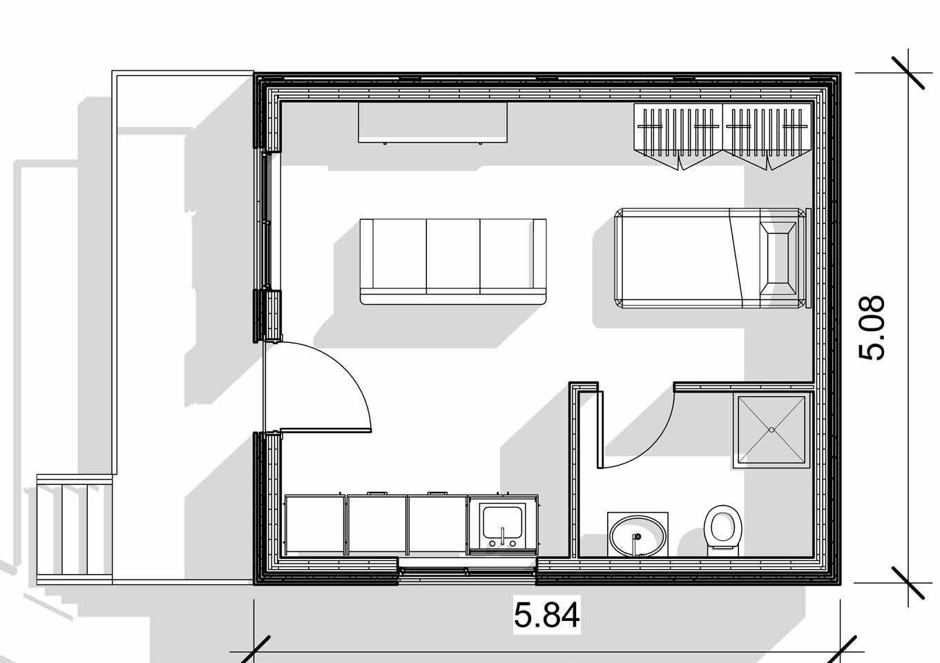 Door frame CLT wall Plywood door panel Stainless steel handle Timber frame Double glazed glass panel 5 ply CLT wall DOOR DETAIL WINDOW DETAIL Axonometric section View Plan Section Plan