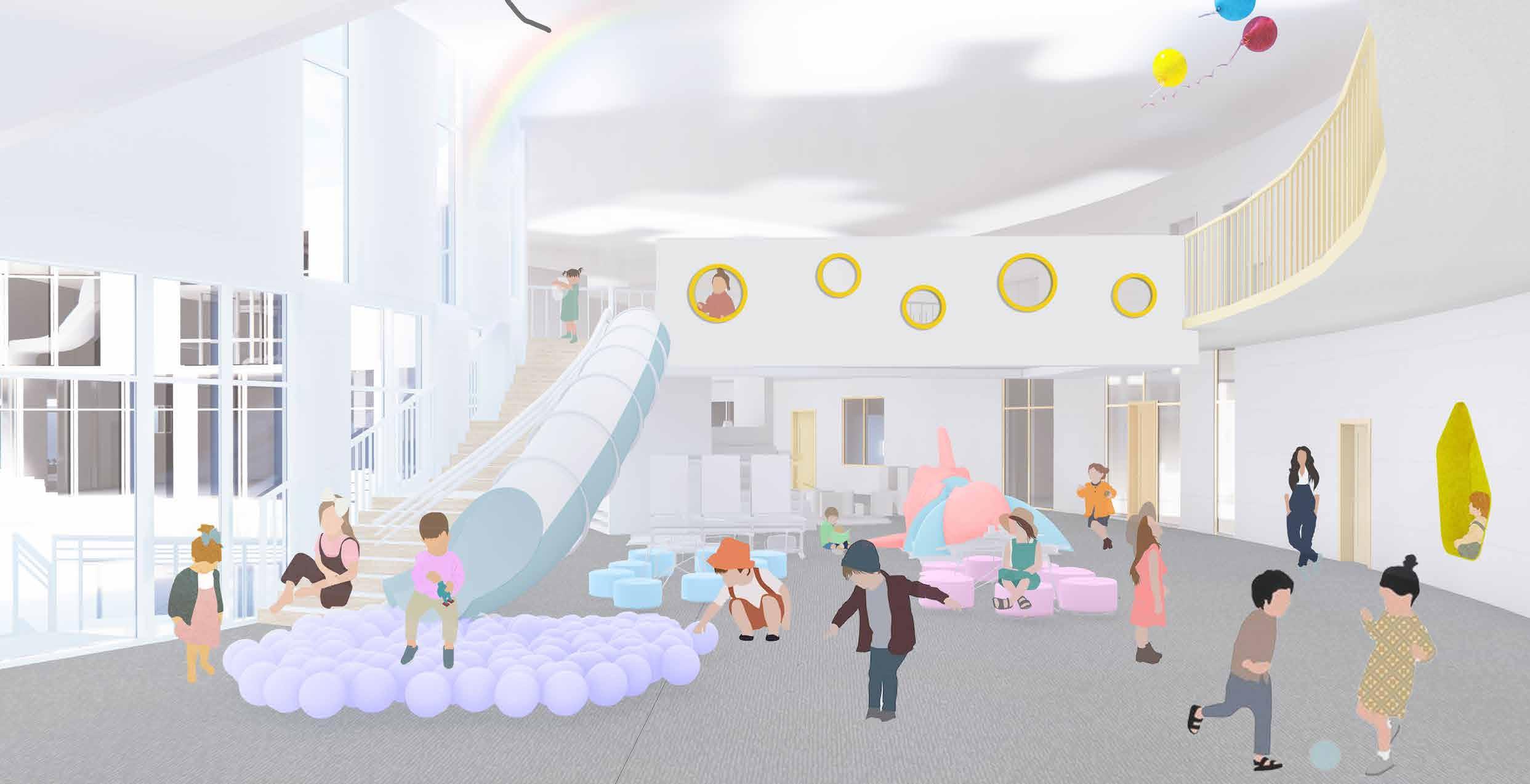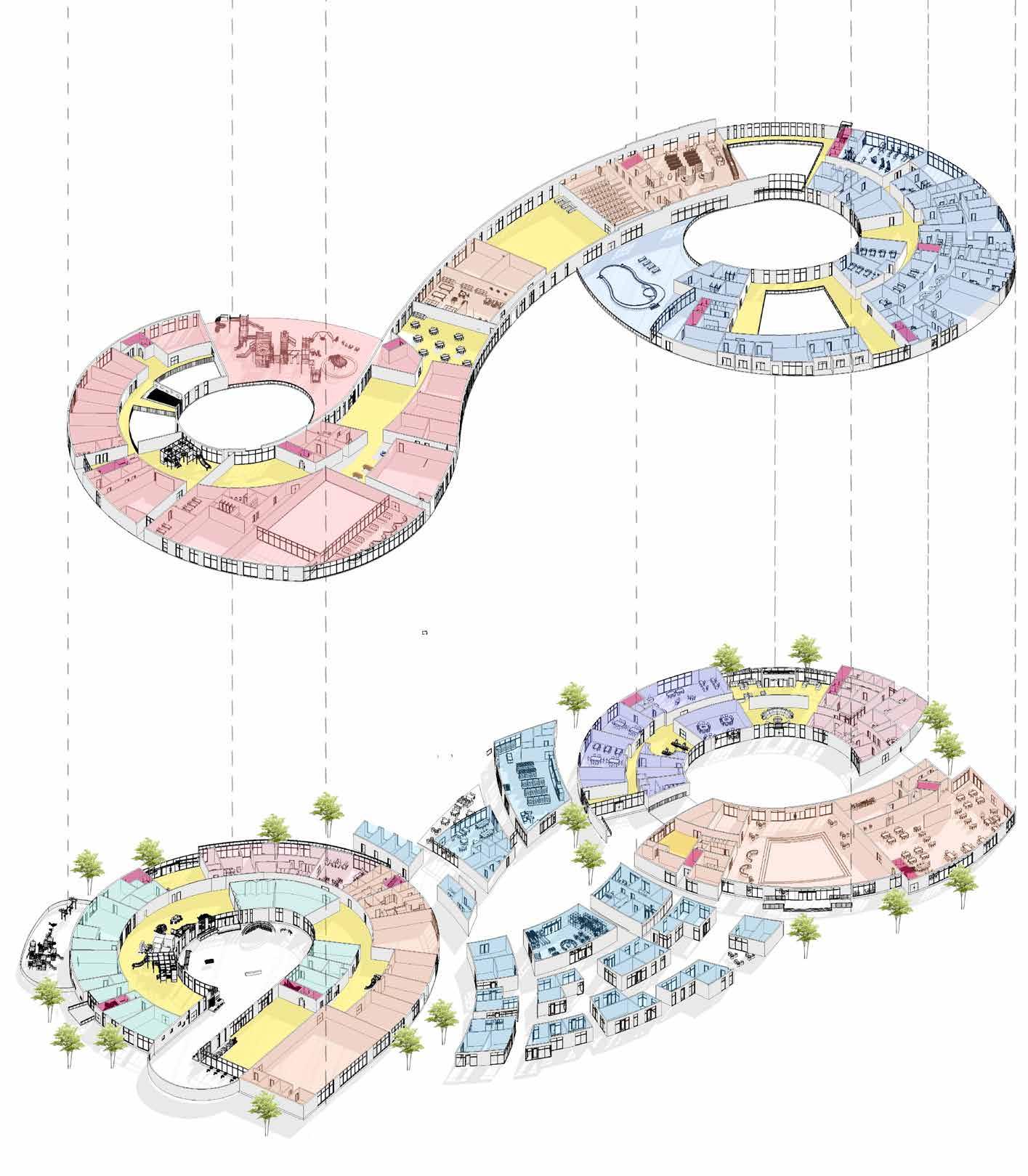 The Early Learning Centre is a nursery/ daycare designed keeping children in mind. The world for children opens up different oppurtunities for them to explore and understand their passion better. The shape is curved in order to maintain the safety of the children as well as give them the freedom to explore all the spaces.