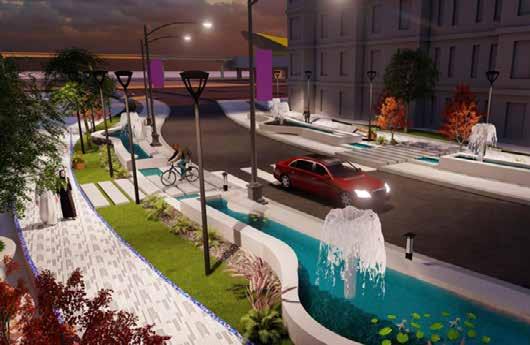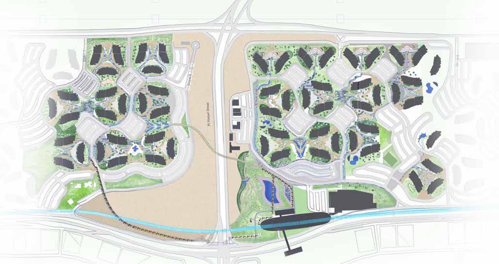 The retail zone is planned with the traditional souq layout. At the start the public is greeted by a public plaza and restaurants and food kiosks. Futher ahead the retail stores catering to the publics needs are placed along the two major streets with pocket green spaces in between.