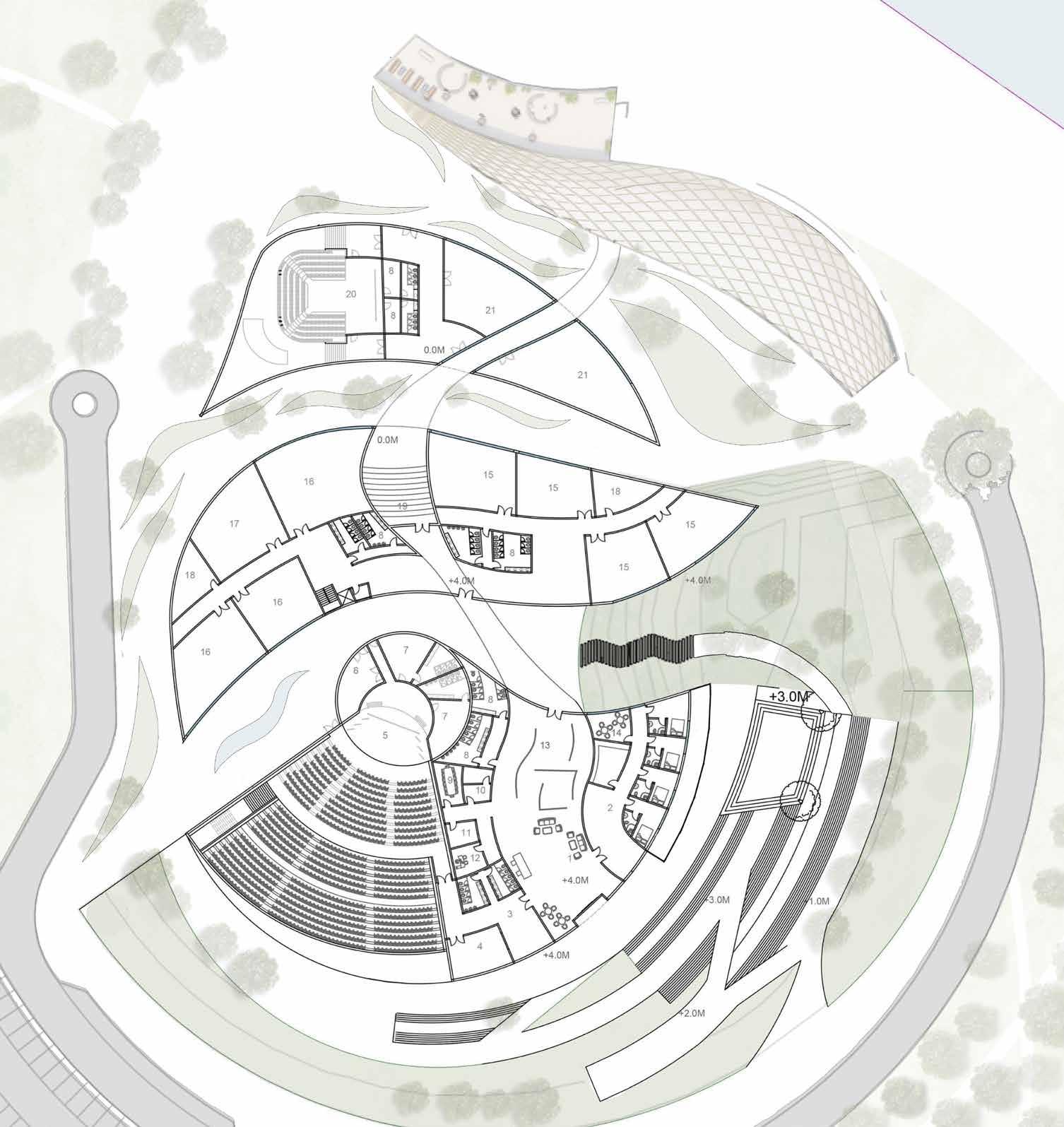 Intergenerational Connectivity Residential outdoor garden Visual Connectivity between all floors 1. Makerspace Lab 2. Class room 3. Activity room 4. Creative Play Room 5. Toilet 6. Cinema Theatre 7. Sleeping Room 8. Children’s Indoor Swimming Pool 9. Play Area 10. A 11. Sports hall 12. Multi- Purpose Room 13. Viewing Deck 14. Black Box theatre 15. Intergenerational Space 16. Rehearsal studio 17. Performance Arts studio 18. Intergenerational Game Room 19. Laundry 20. MEP 21. Maintenance Room 22. Service Room 23. Storage 24. Game Room 25. Dance studio 26. Music studio 27. Mini Golf 28. Cinema Theatre 29. Library 30. Therapy Room 31. Group Therapy room 32. GYM 33. Yoga Studio 34. Facial room 35. Treatment Room 36. Sauna 37. Jacuzzi 38. Room 39. VIP Treatment Room 40. Laundry 41. Toilet Changing room 42. Reception 43. Nurse’s Station 44. Store
